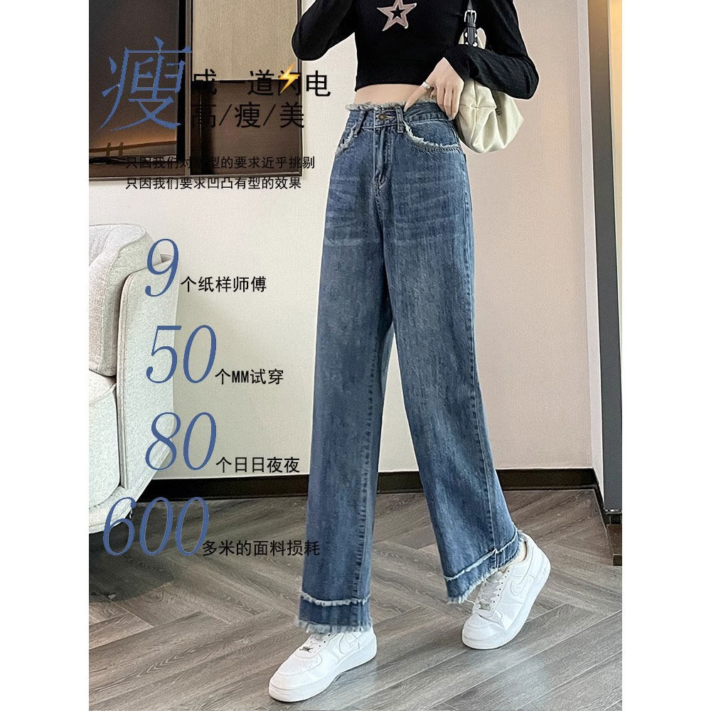 九分高腰阔腿宽松牛仔裤女显瘦2026年春夏薄款新款窄版百搭直筒裤
