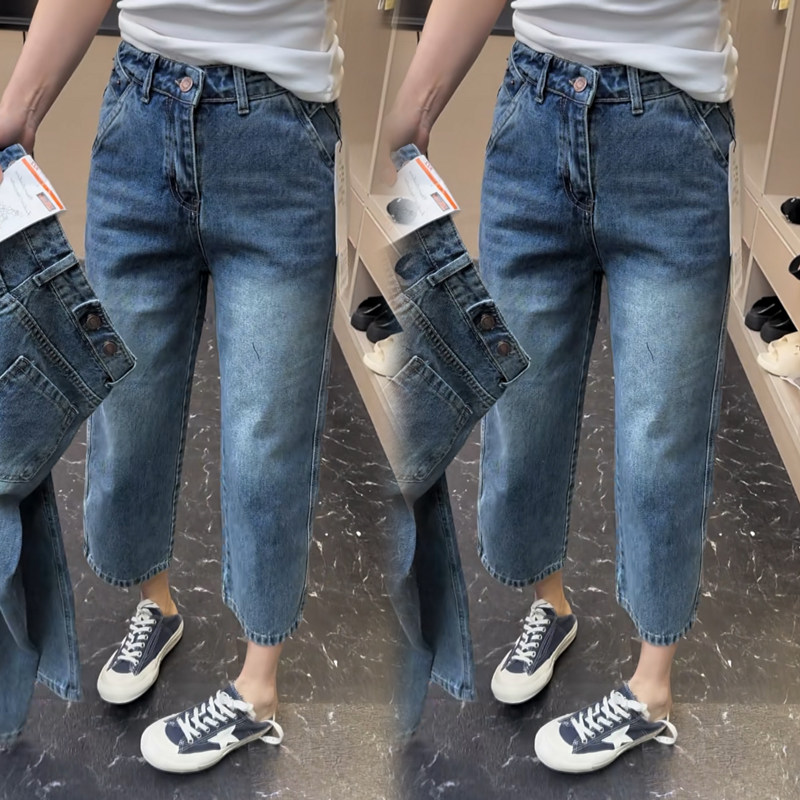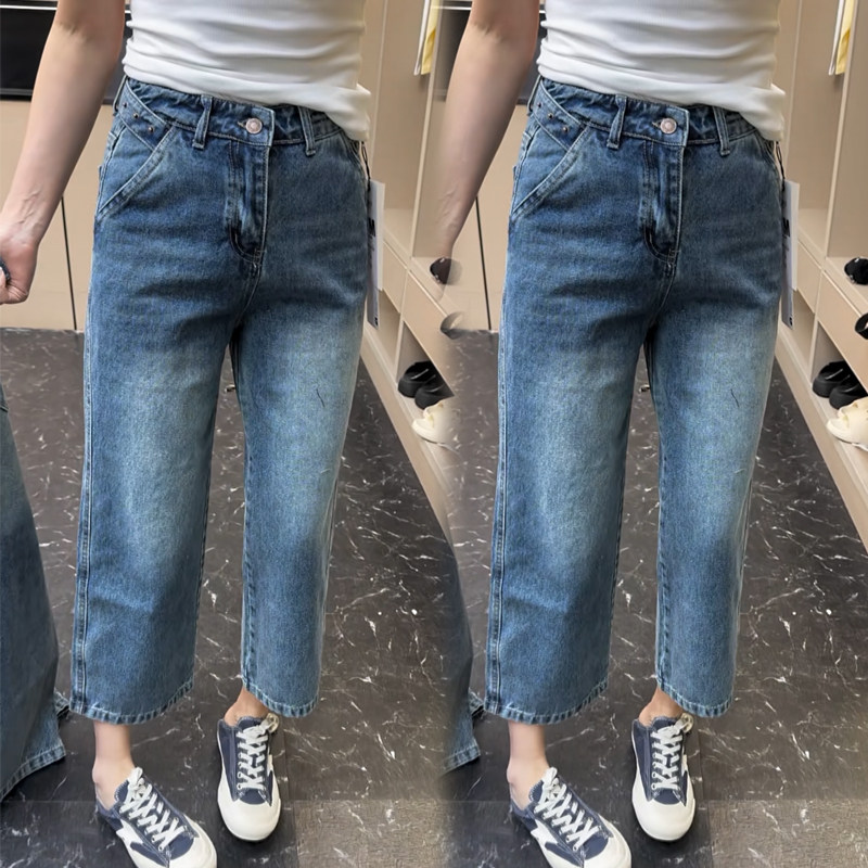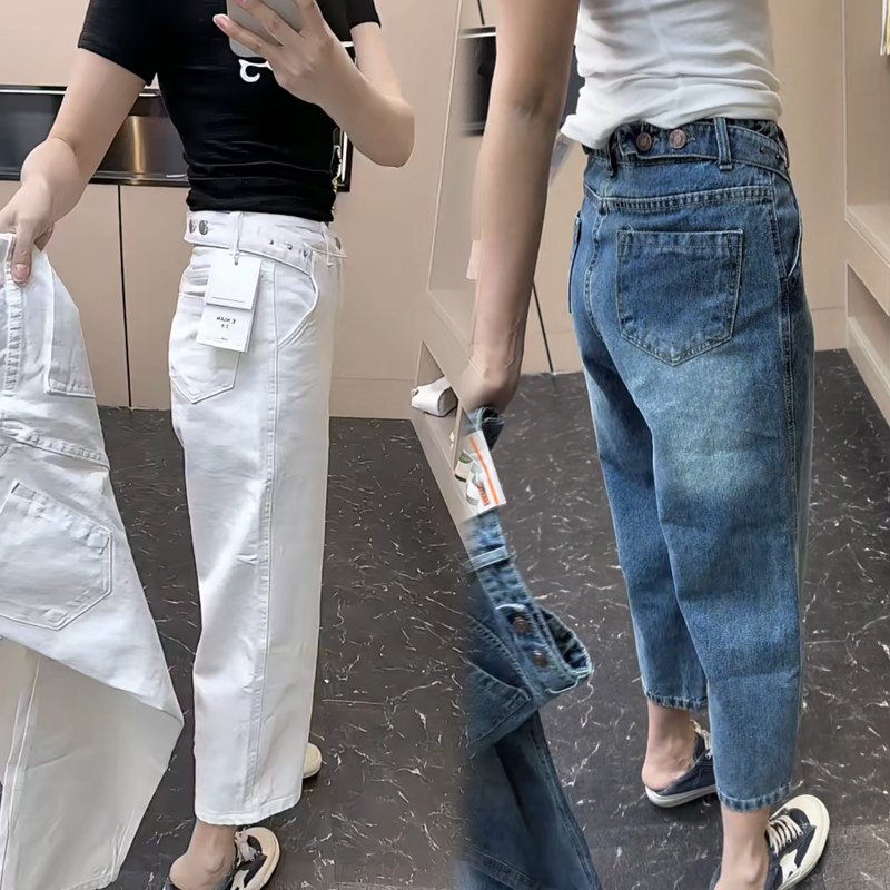 欧货2026年春夏新款高腰牛仔法棍裤显瘦弹力高腰百搭九分直筒裤