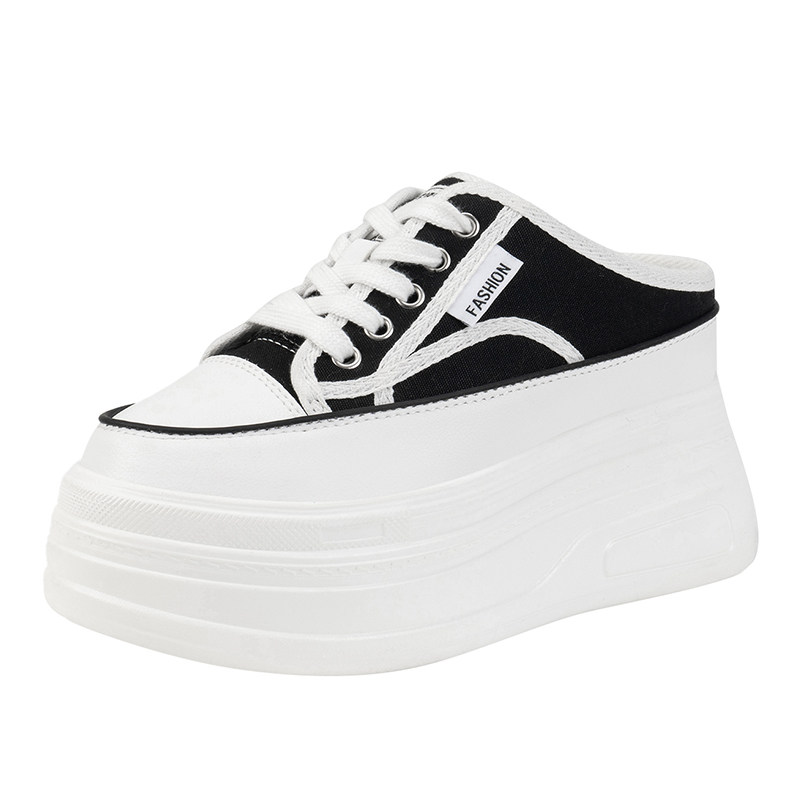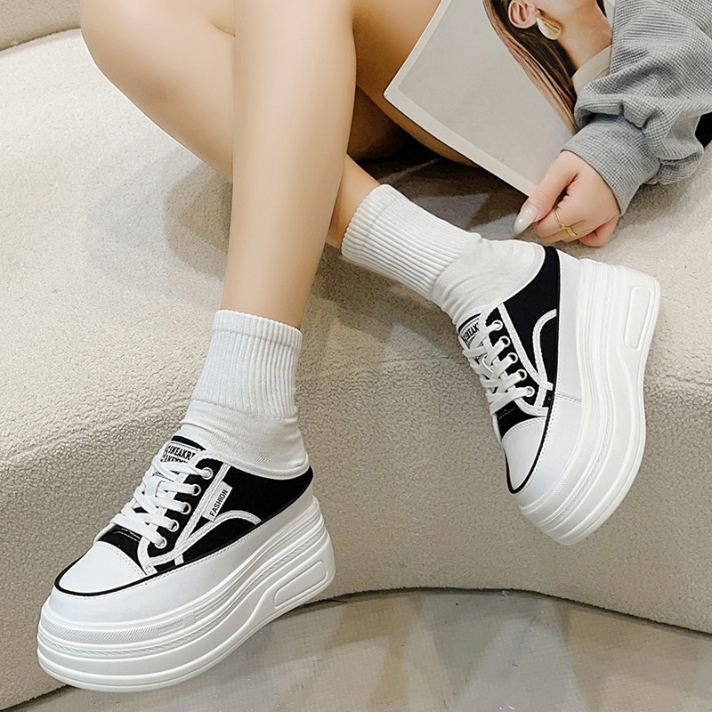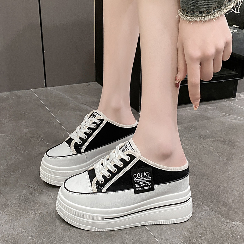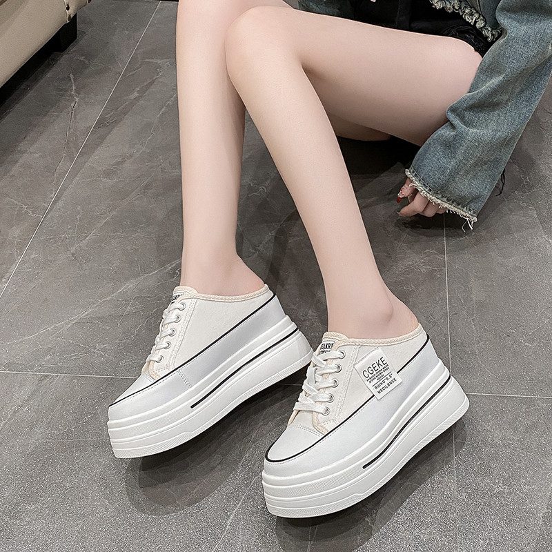 春秋超轻小个子外穿包头半拖鞋女厚底松糕内增高凉拖小白鞋9厘米