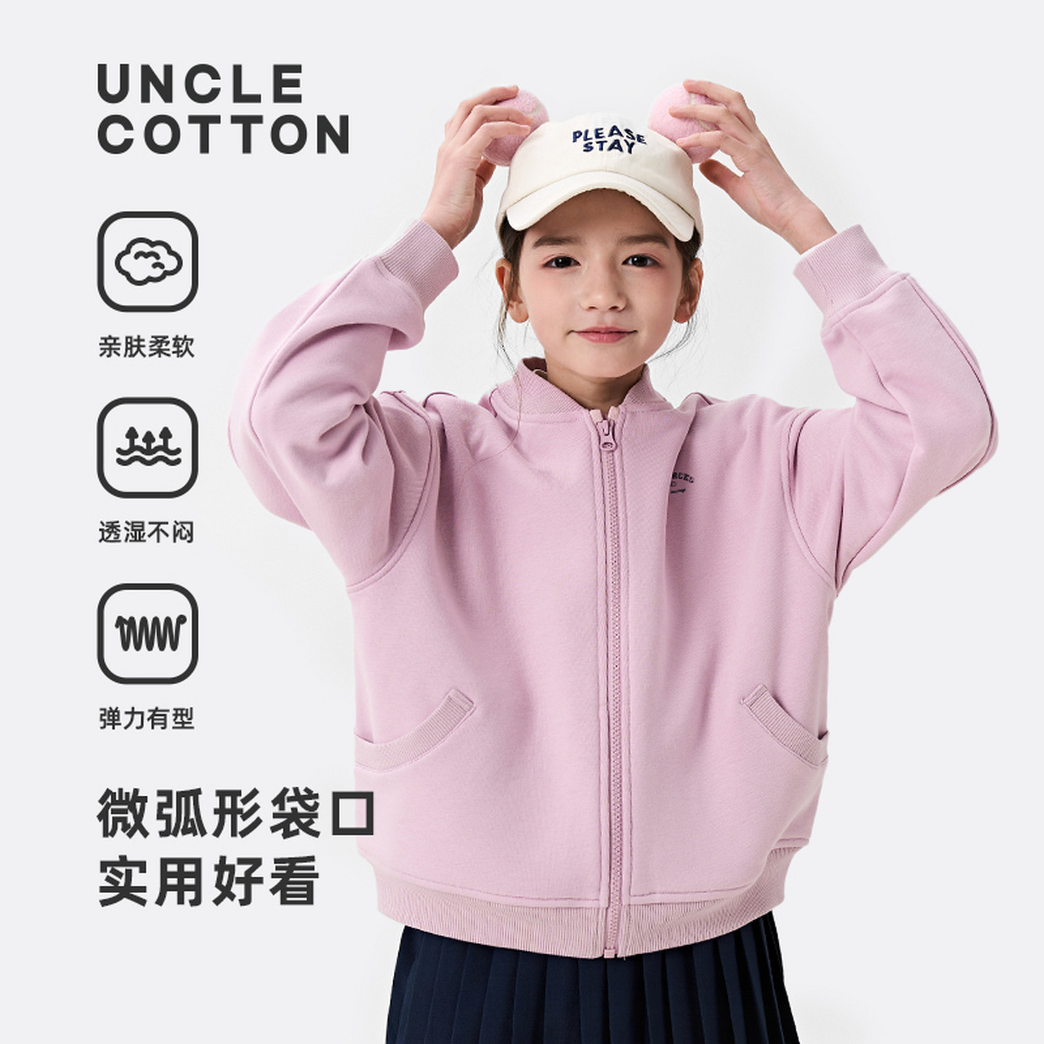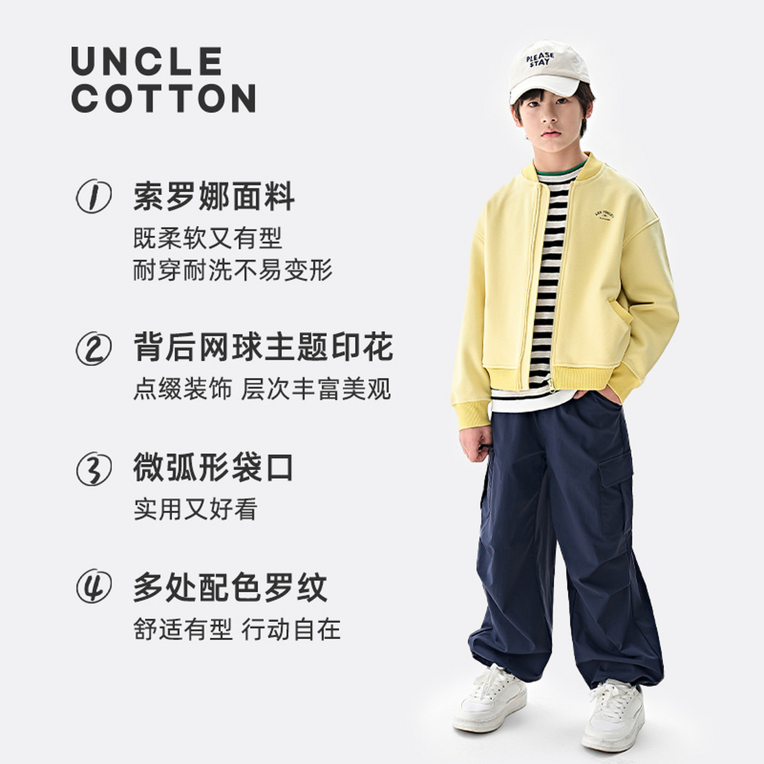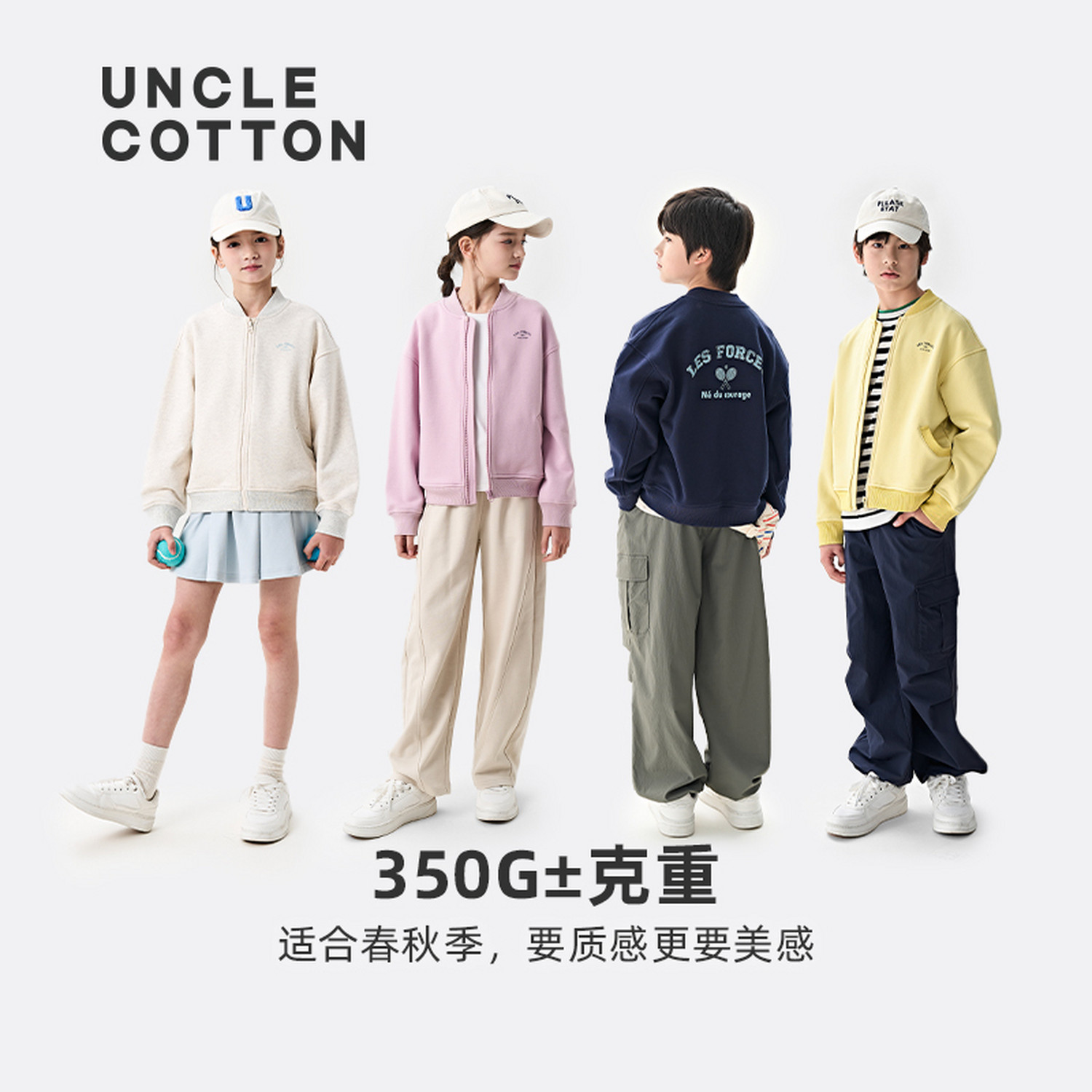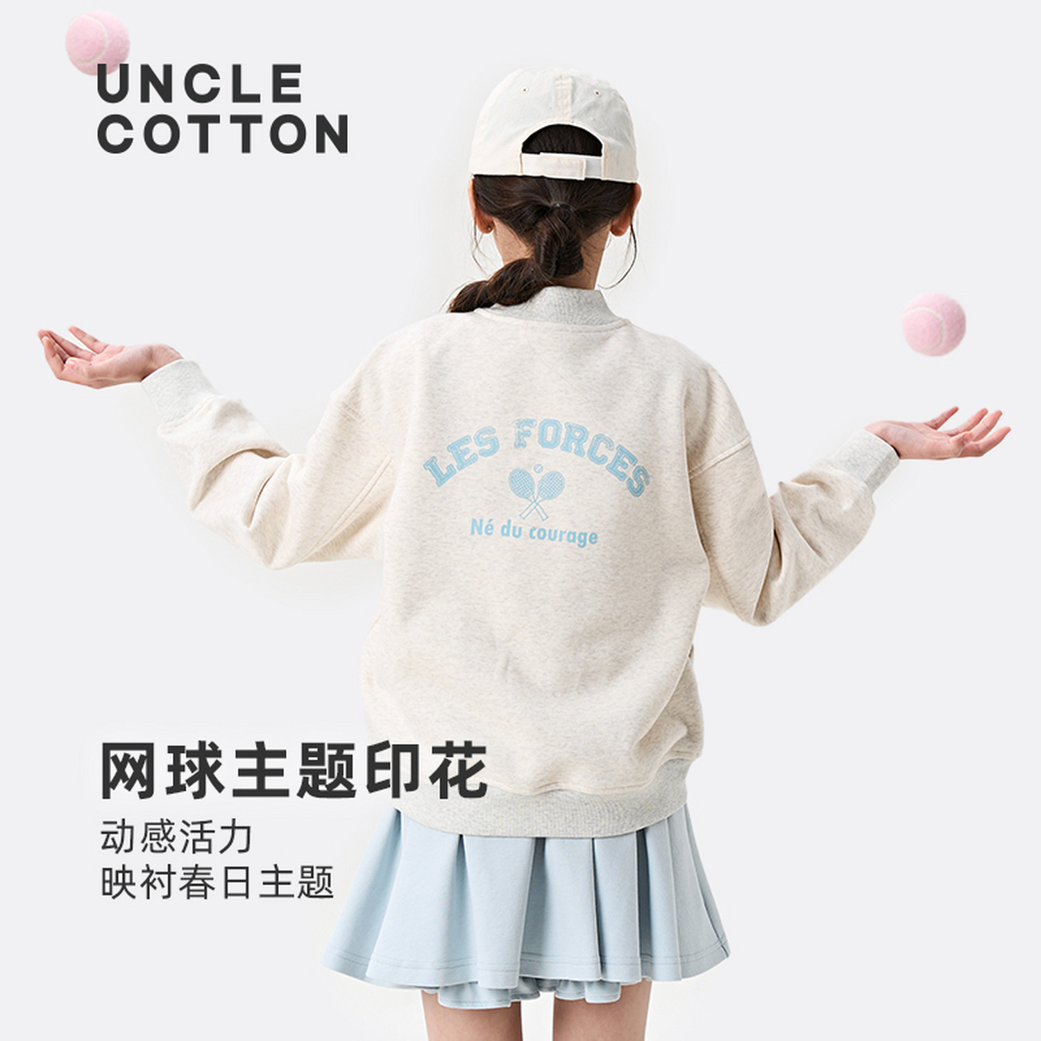棉叔叔男童运动棒球服秋冬新毛圈夹克女童上衣落肩袖网球印花外套