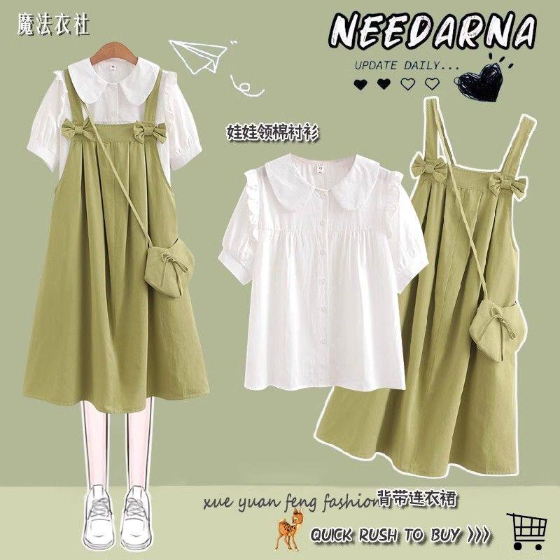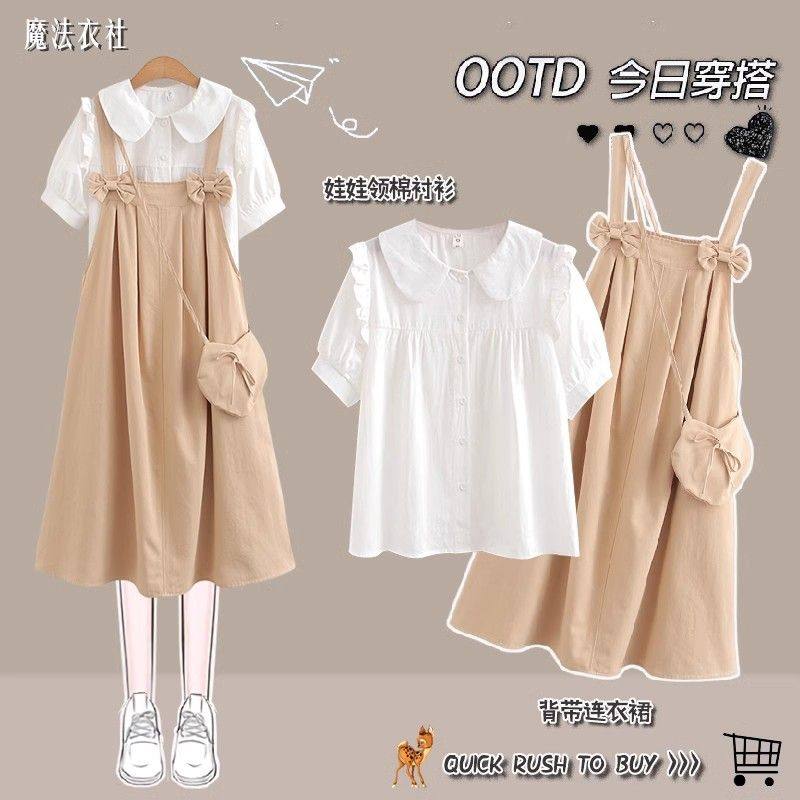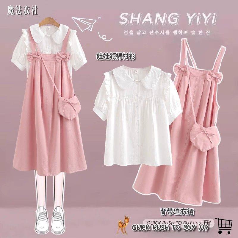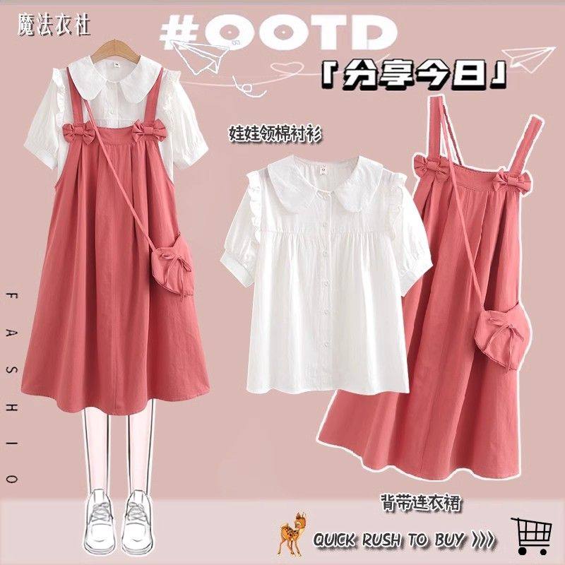 女童夏装背带裙套装2026新款12岁13中大童5学生洋气短袖t恤宽松潮