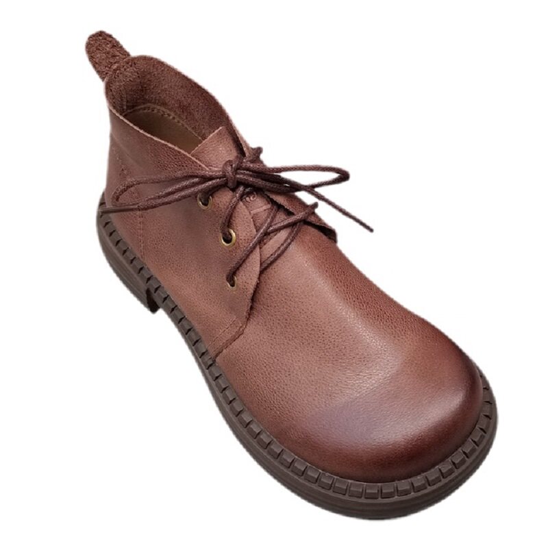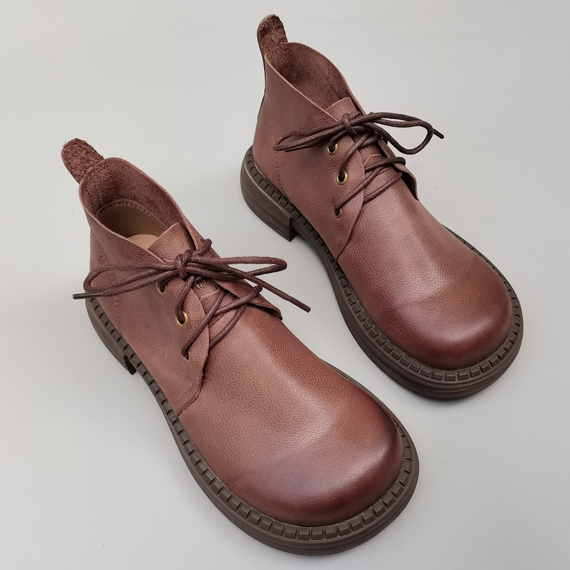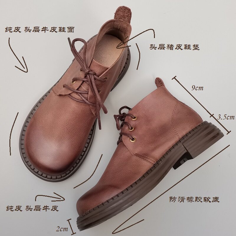 真皮纯皮大头宽松版女鞋秋季外贸头层牛皮短靴中跟系带高帮原单鞋