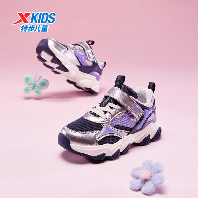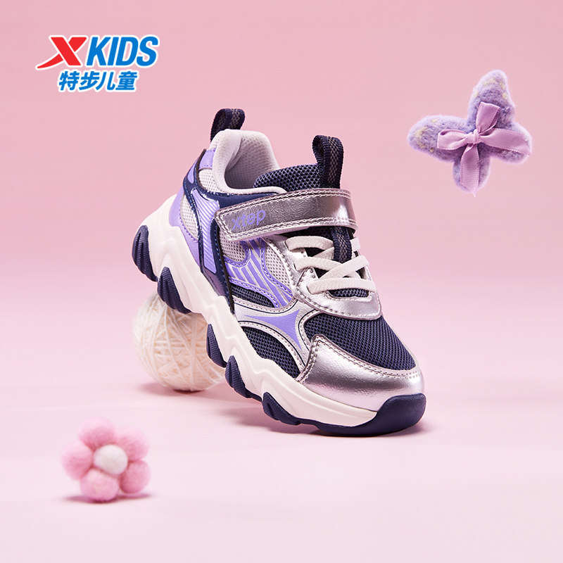 星辰|特步童鞋新款幼小童女童魔术贴休闲鞋子儿童软底运动鞋