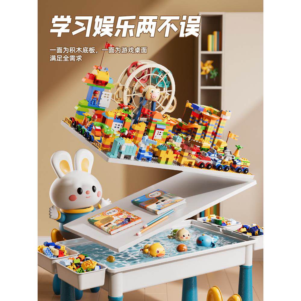 兼容乐高儿童大号积木桌子多功能游戏桌大颗粒益智拼装宝宝玩具