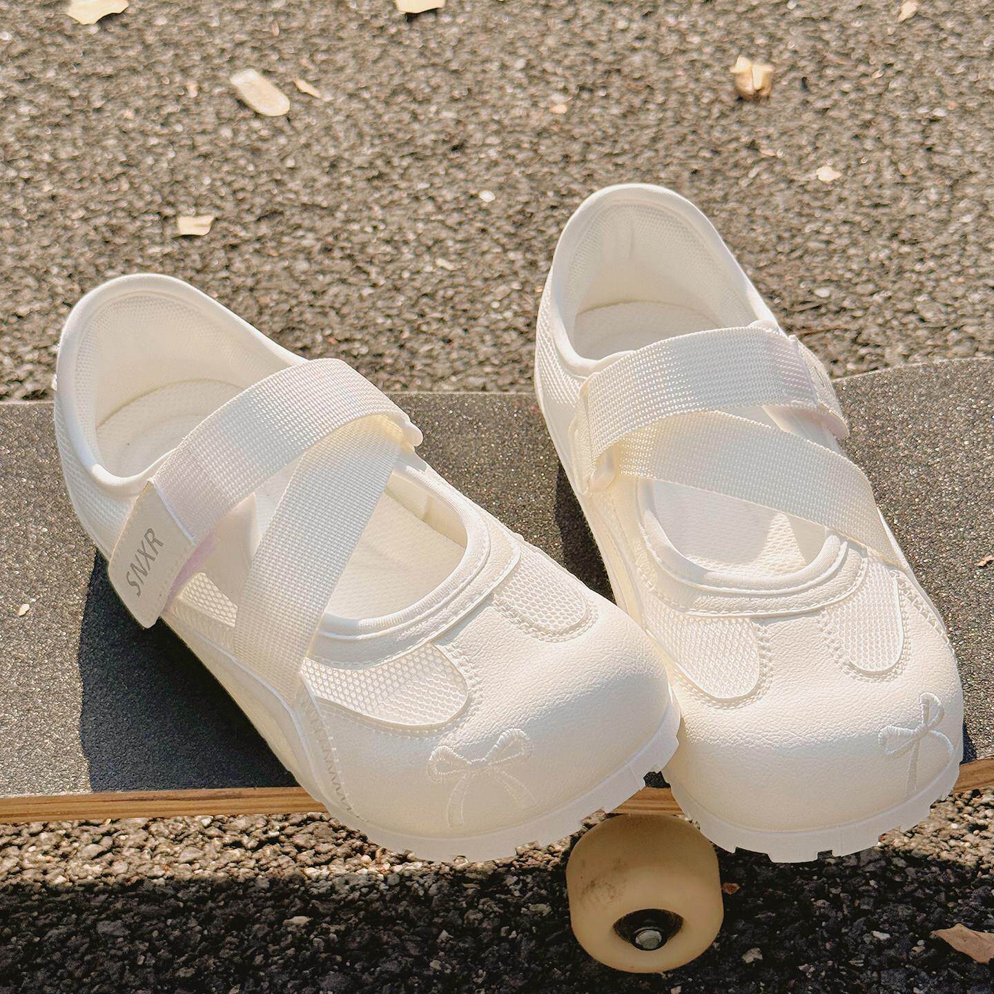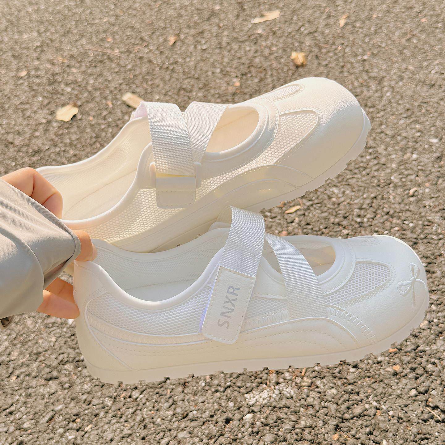 新品夏季透气不闷脚女鞋玛丽珍小白鞋女配裙子鞋子网面德训板鞋护