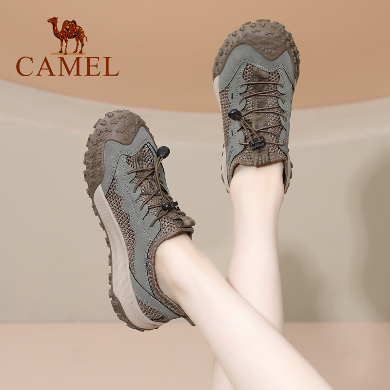 骆驼女鞋2026春夏季新款户外防滑登山鞋透气运动网面鞋厚底休闲鞋