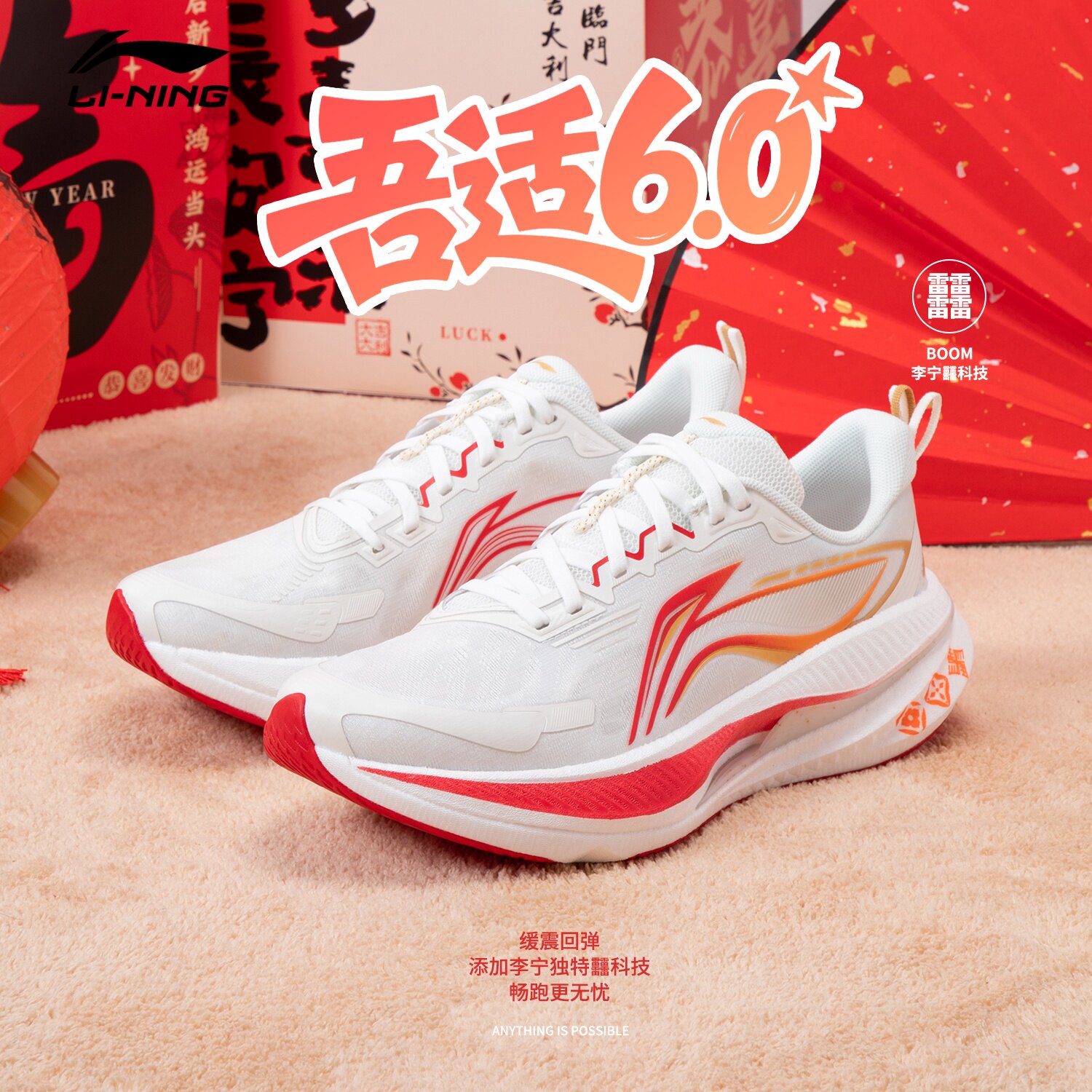 李宁吾适6缓震跑步鞋男26新款青少年体考竞速运动鞋回弹减震跑鞋
