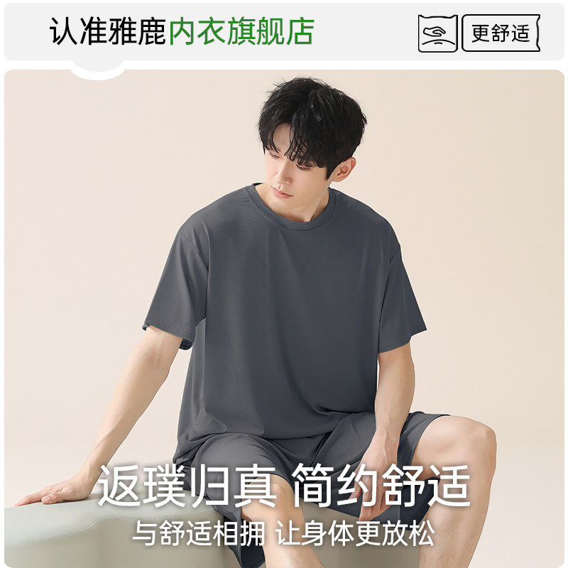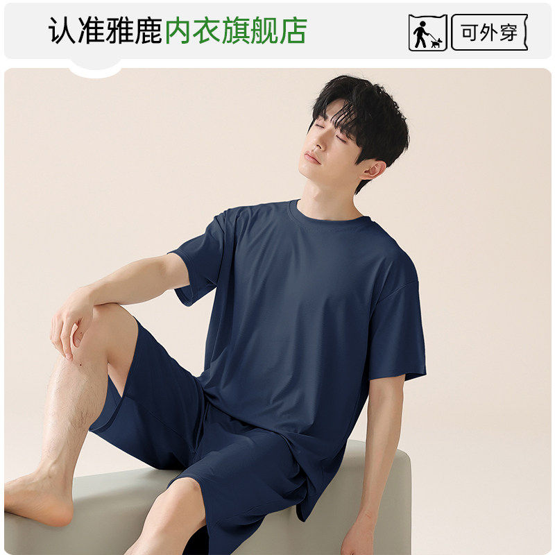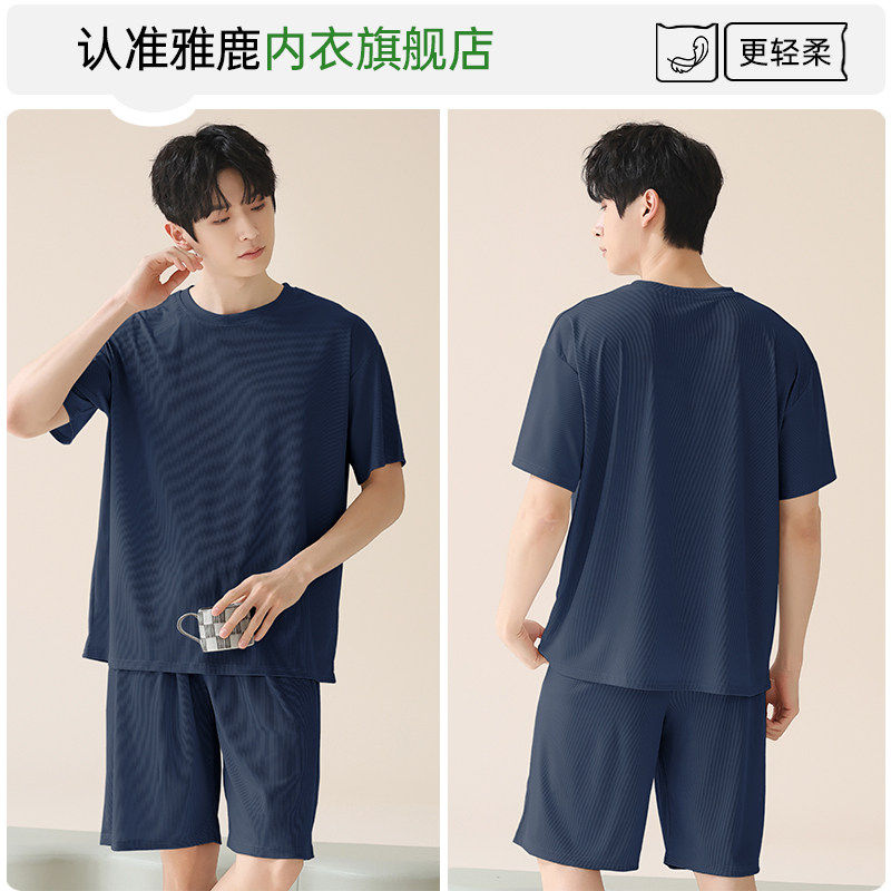 雅鹿睡衣男款夏季薄款冰丝凉感短袖短裤男生家居服大码套装可外穿