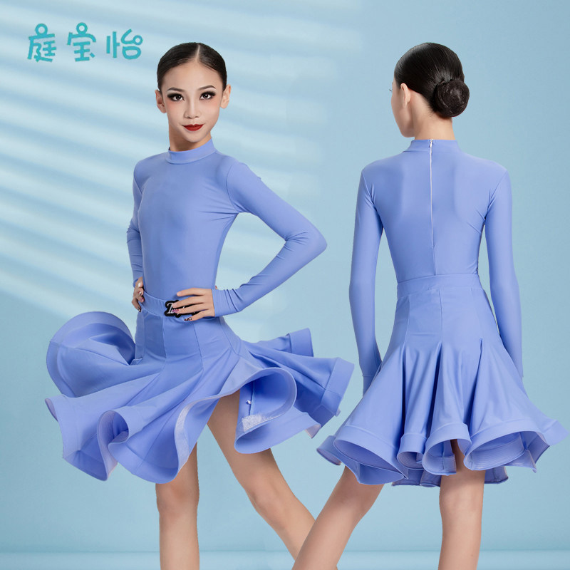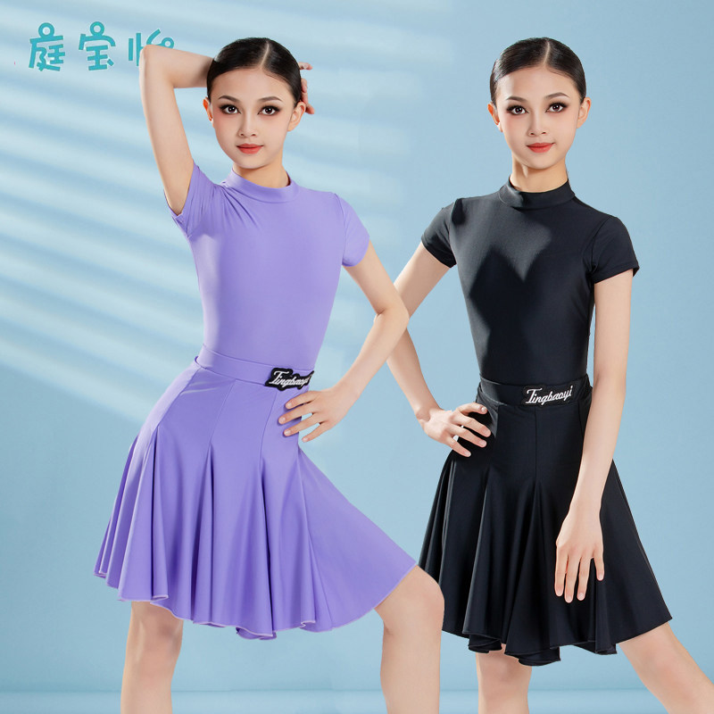 2025新款拉丁舞蹈服女童春秋专业比赛规定服短袖勾手指练功演出服