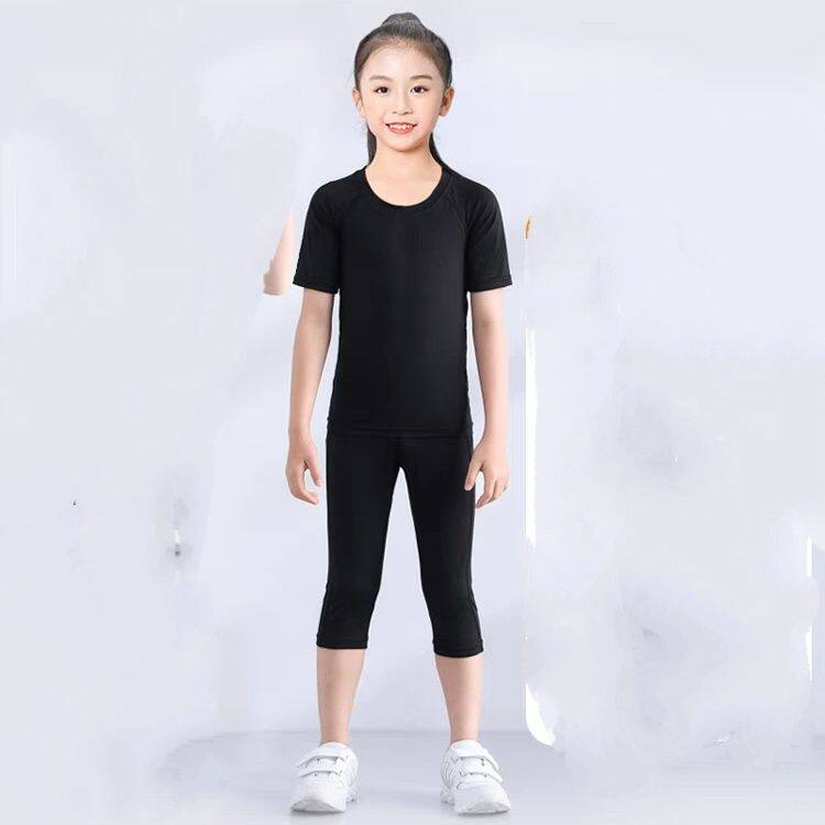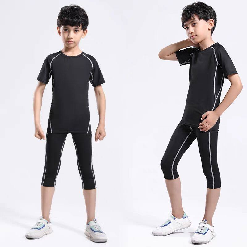 儿童训练服夏季紧身速干运动跑步篮球打底套装短袖七分裤男女童