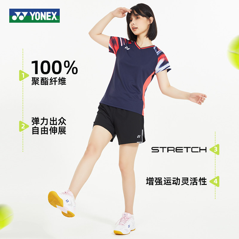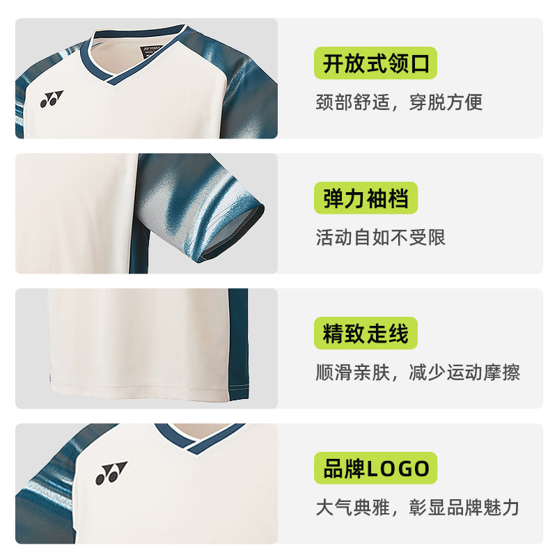 尤尼克斯羽毛球服大赛服25新款运动短袖速干透气亲肤男女款10577