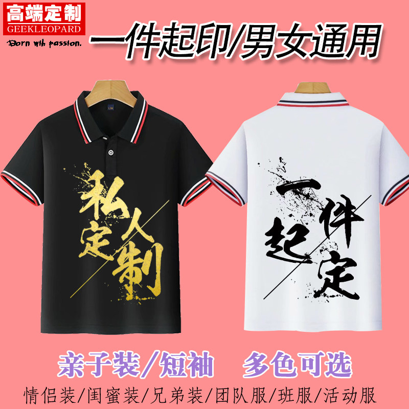定制儿童亲子装t恤短袖男纯棉翻领polo衫小学生校服中大童DIY班服