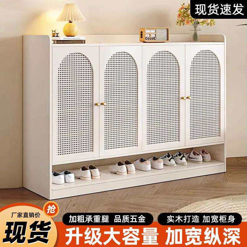 fLE实木鞋柜收纳柜靠墙门厅玄关进门家用超大鞋柜透气多层藤编鞋