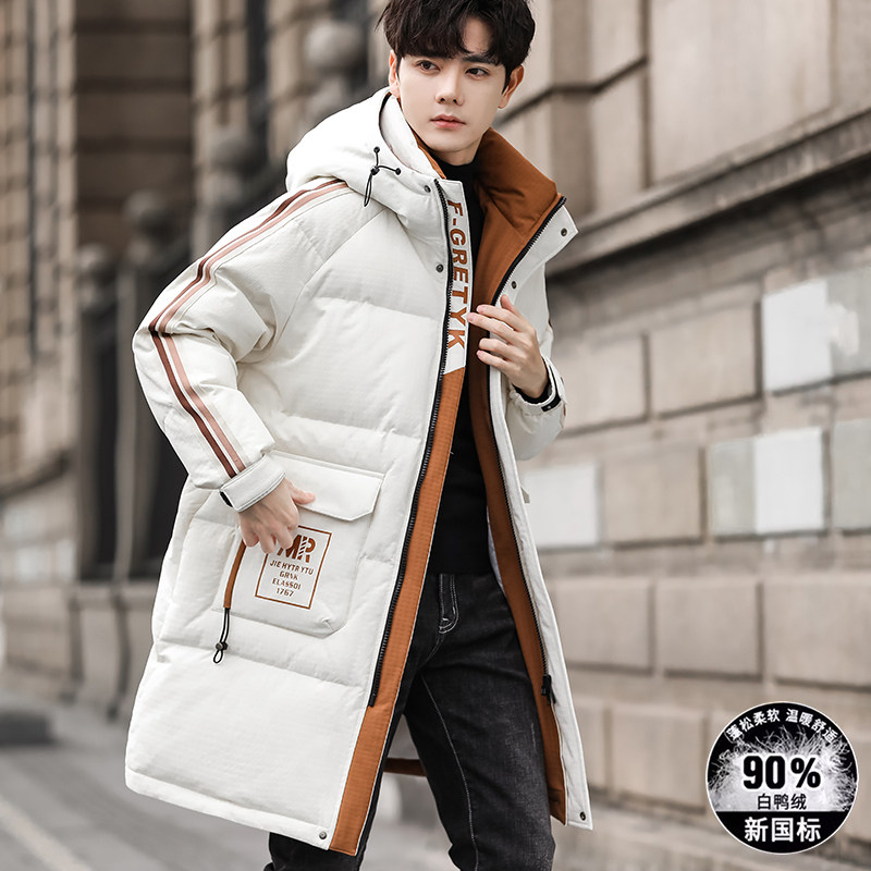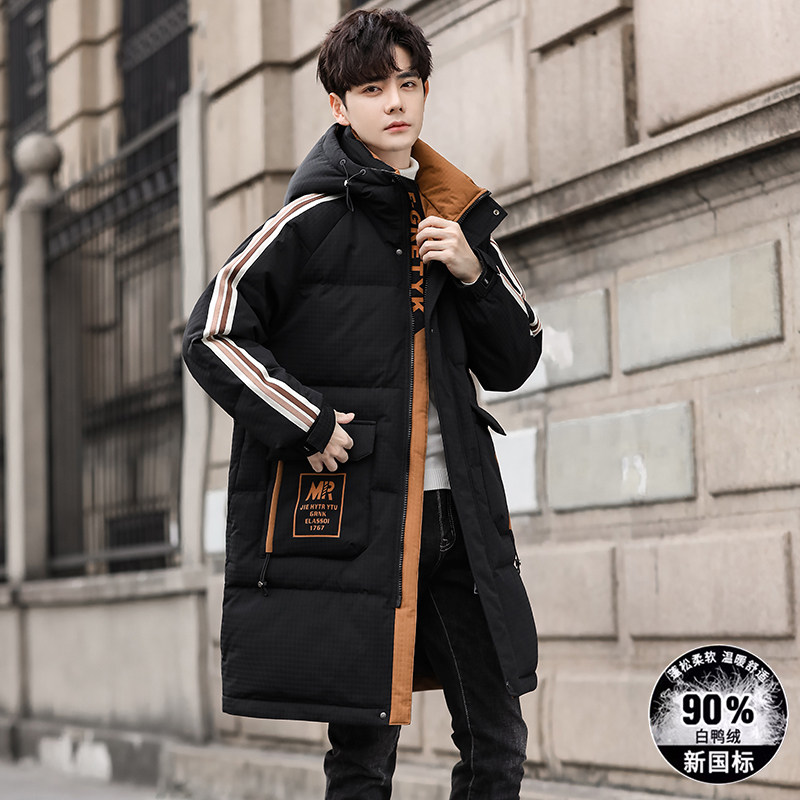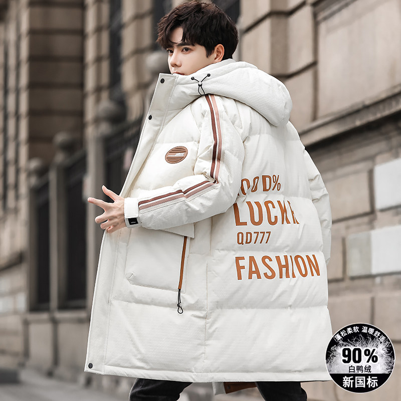 13初高中生白鸭绒外套16青少年衣服男孩15岁大童冬装中长款羽绒服