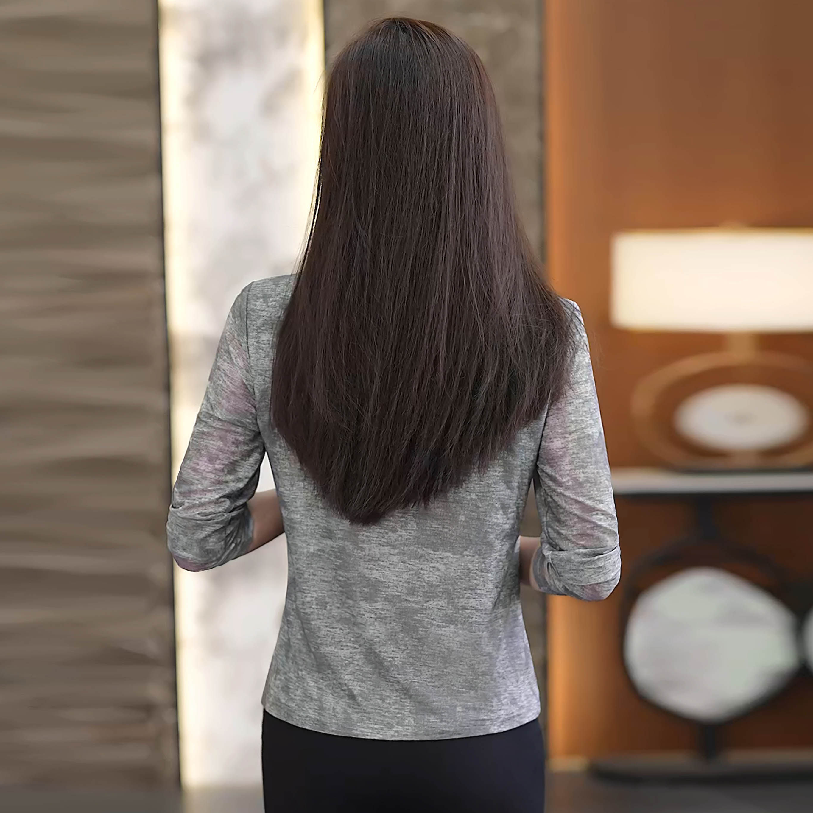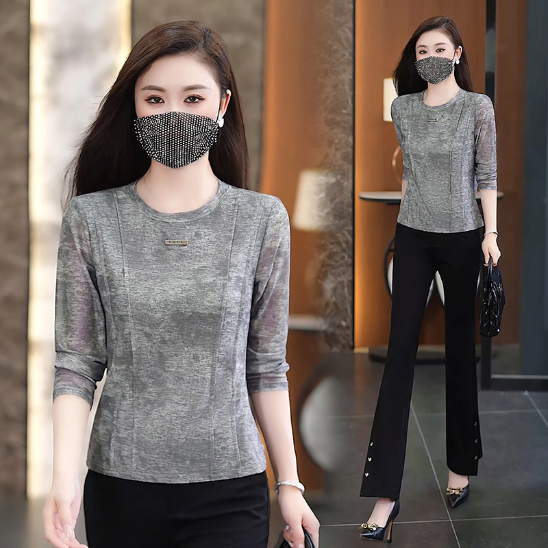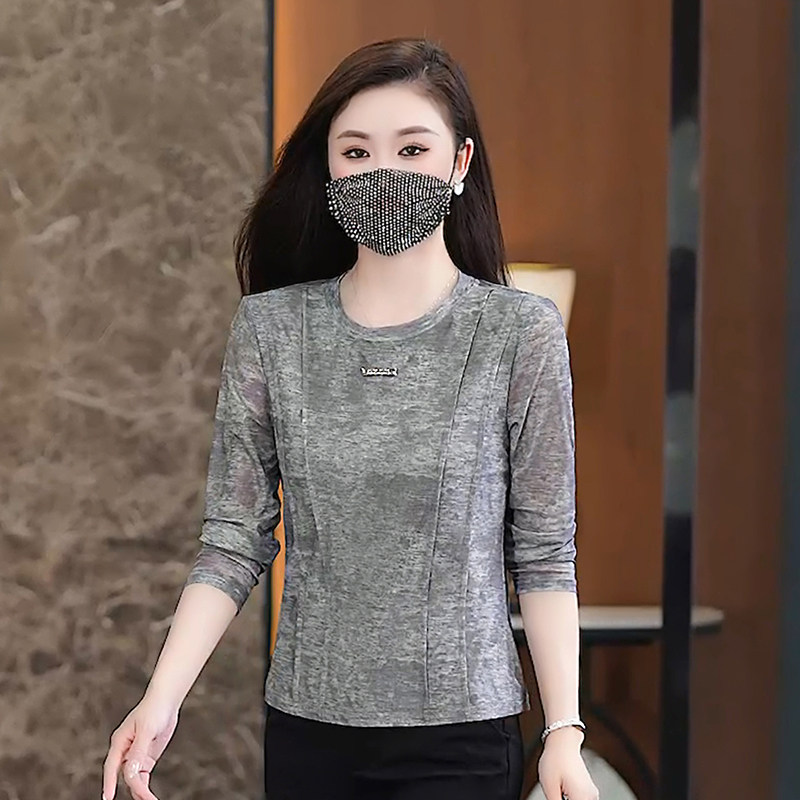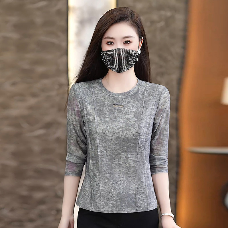 灰色长袖t恤女2026新款春款时尚洋气小衫修身显瘦女士打底衫上衣