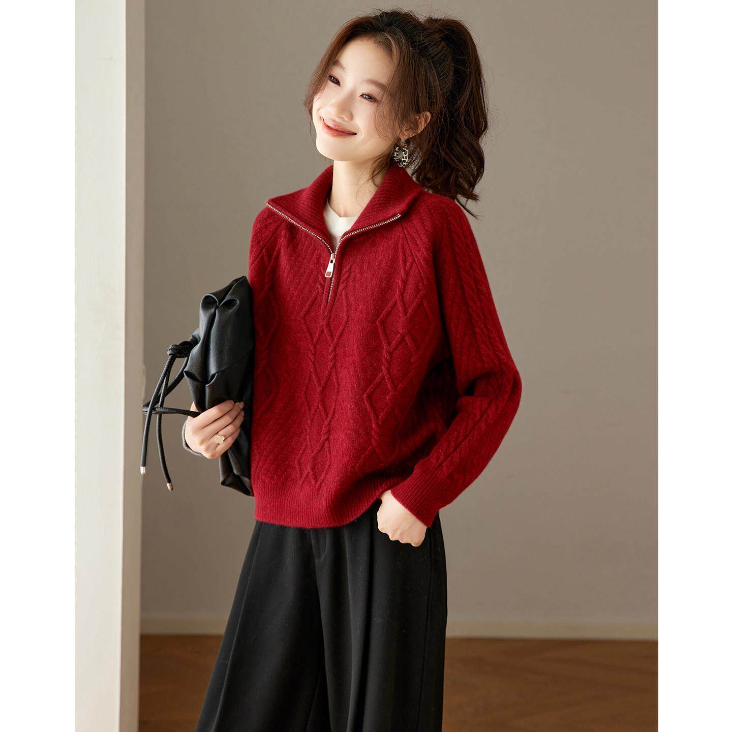 红色高领毛衣女款2026秋冬季新款超火减龄上衣时尚加厚针织打底衫