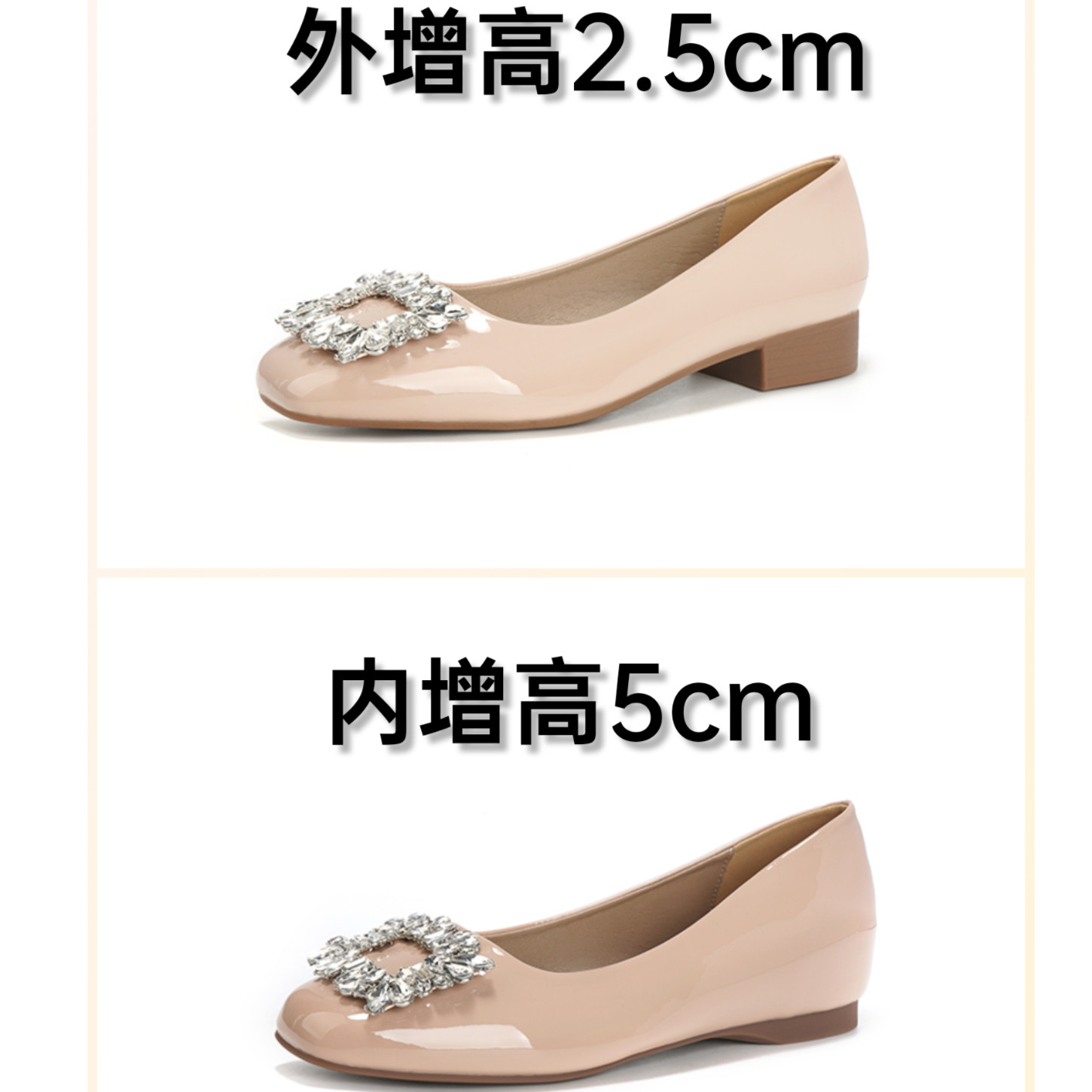 羊皮水钻单鞋2026春夏新款甜美时尚粗跟方头芭蕾风小个子增高女鞋