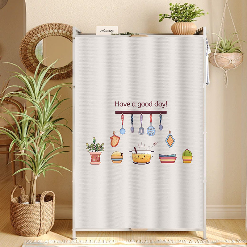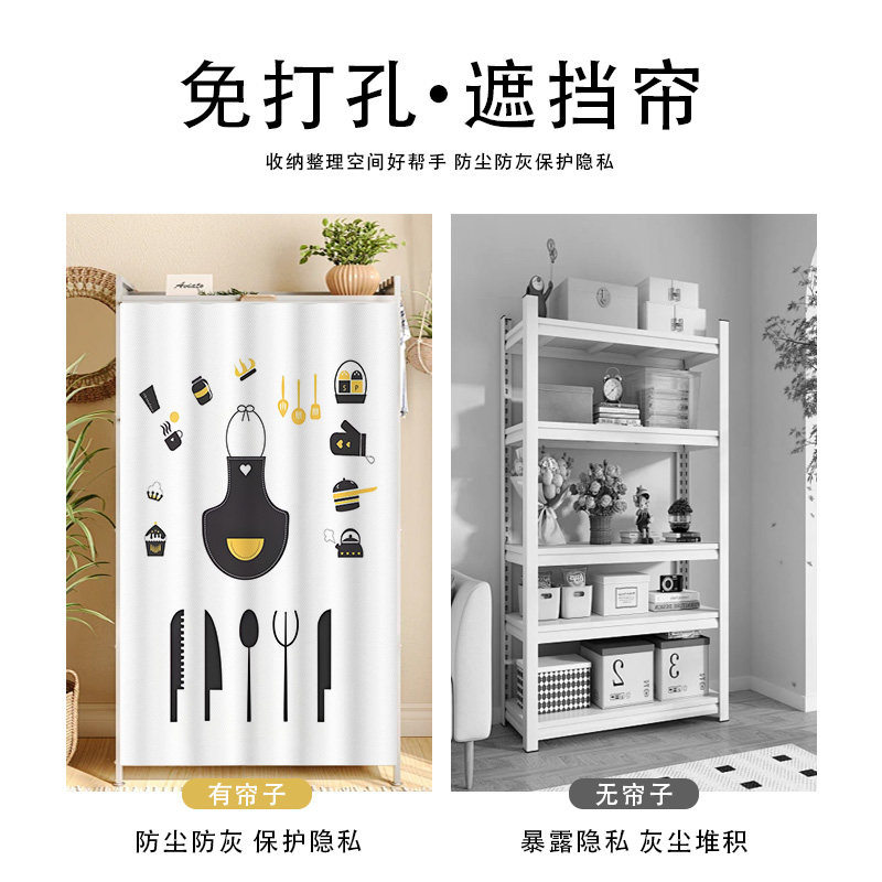 厨房柜子遮挡帘防水遮丑置物架碗柜门拉帘免打孔魔术贴橱柜防尘帘