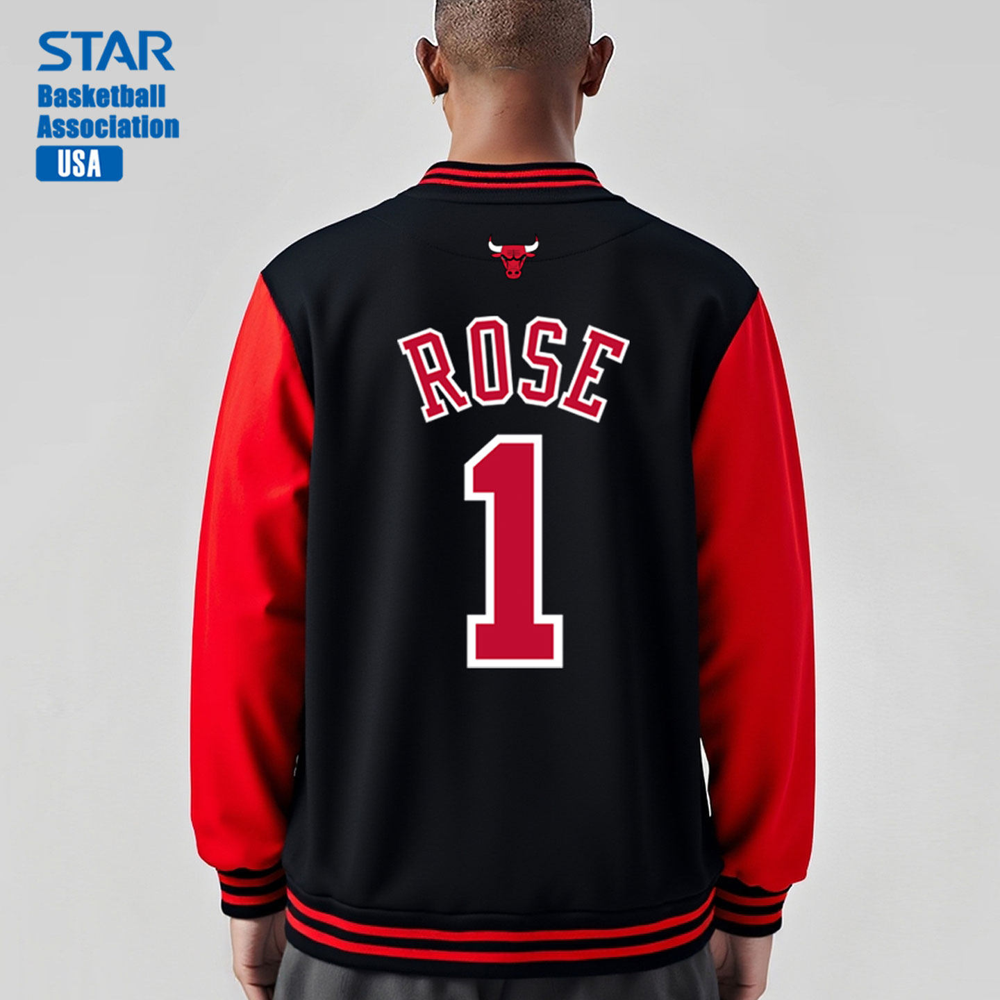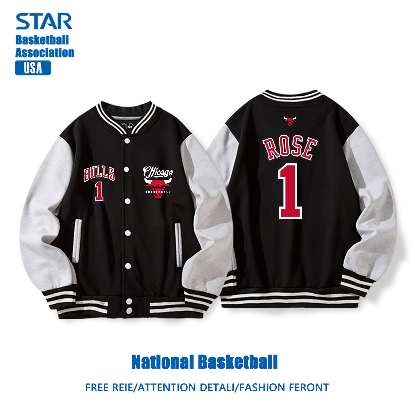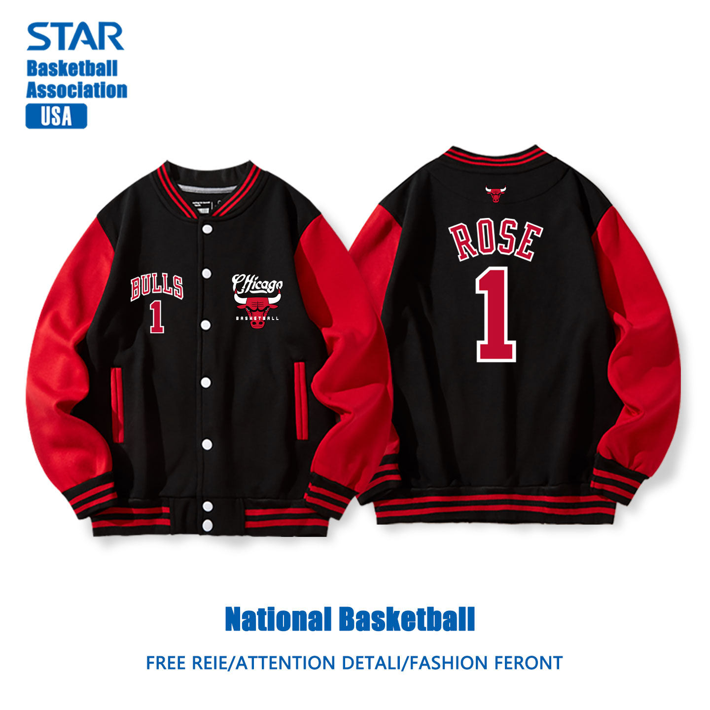 公牛队罗斯篮球运动夹克男秋冬季青少年开衫棒球服训练潮牌外套