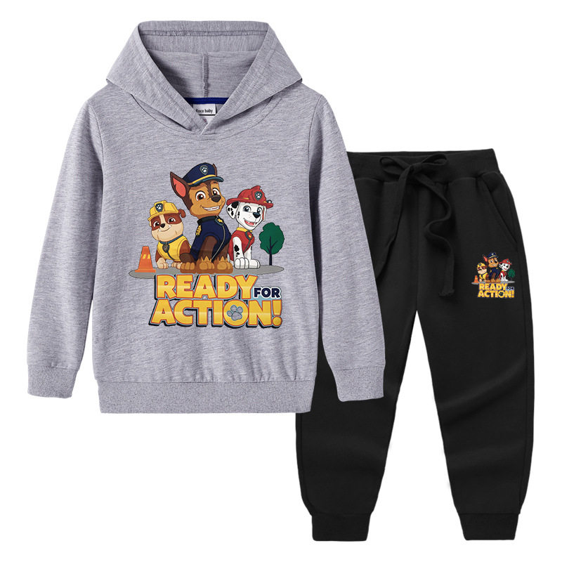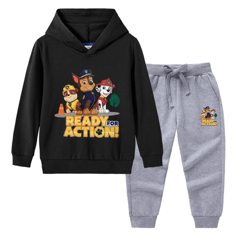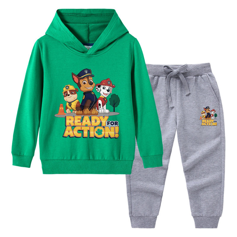 汪汪队衣服春秋款男童卫衣套装春装连帽子外穿儿童长袖薄款两件套