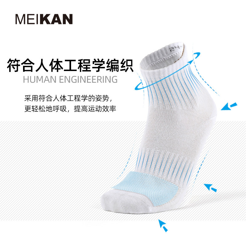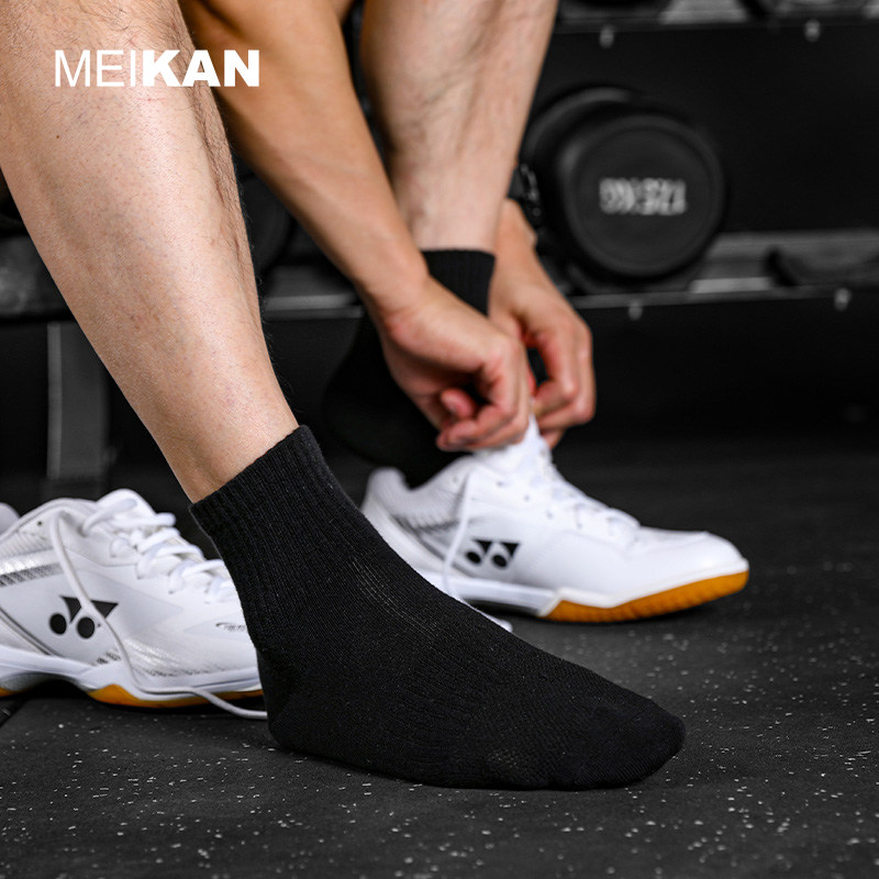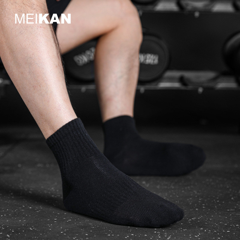 MEIKAN袜子男士秋冬中筒棉白色骑行袜长筒马拉松袜运动短袜黑色