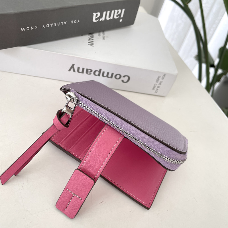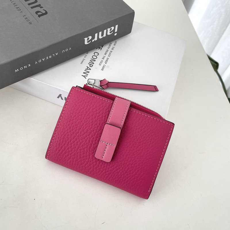 真皮钱包女短款撞色2025新款头层牛皮叠钱夹多卡位小众卡包零钱包
