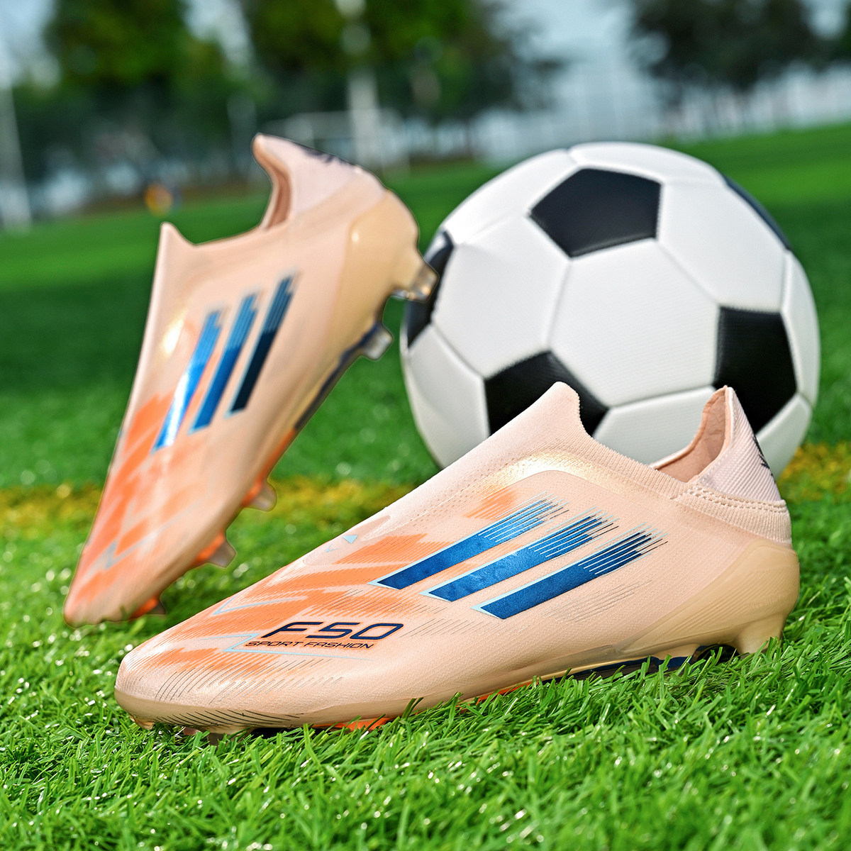梅西F50新款足球鞋长钉AG无鞋带TF碎钉青少年小学生中考比赛训练