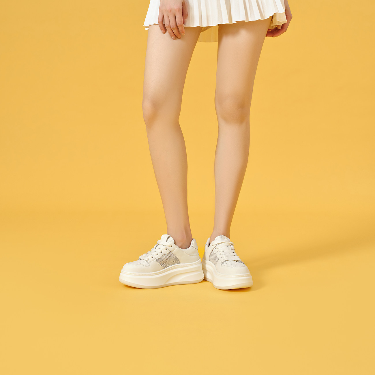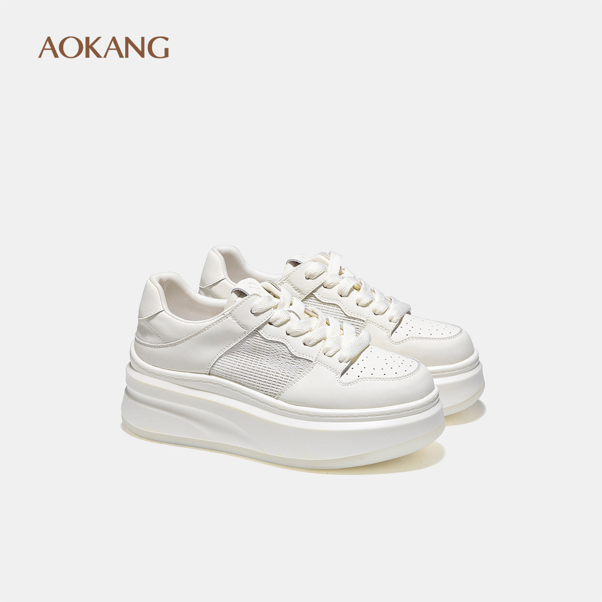 奥康 女鞋春秋板鞋网面透气小白鞋厚底增高踏青休闲运动鞋