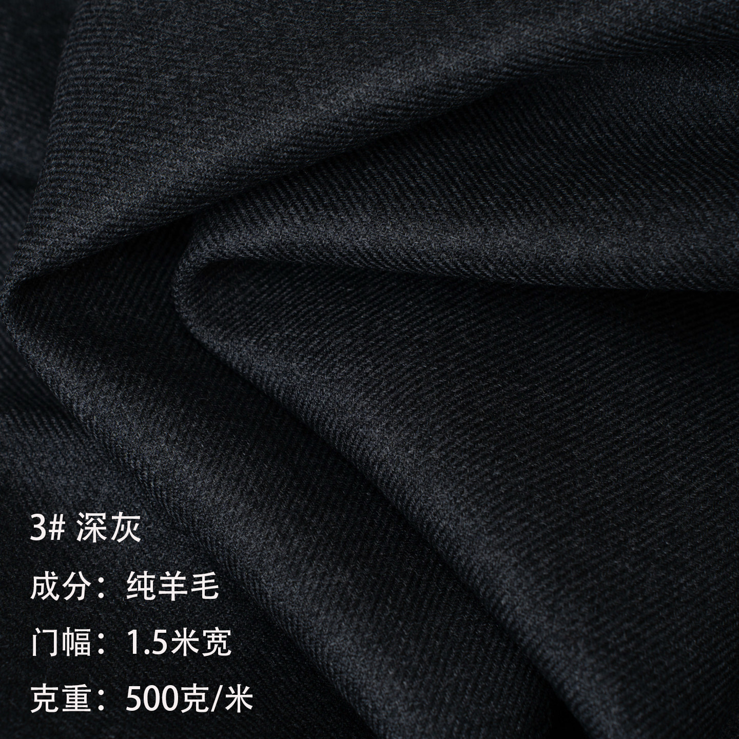 进口高端加厚纯羊毛西服面料500克一米秋冬纯色斜纹裤子布料抗皱