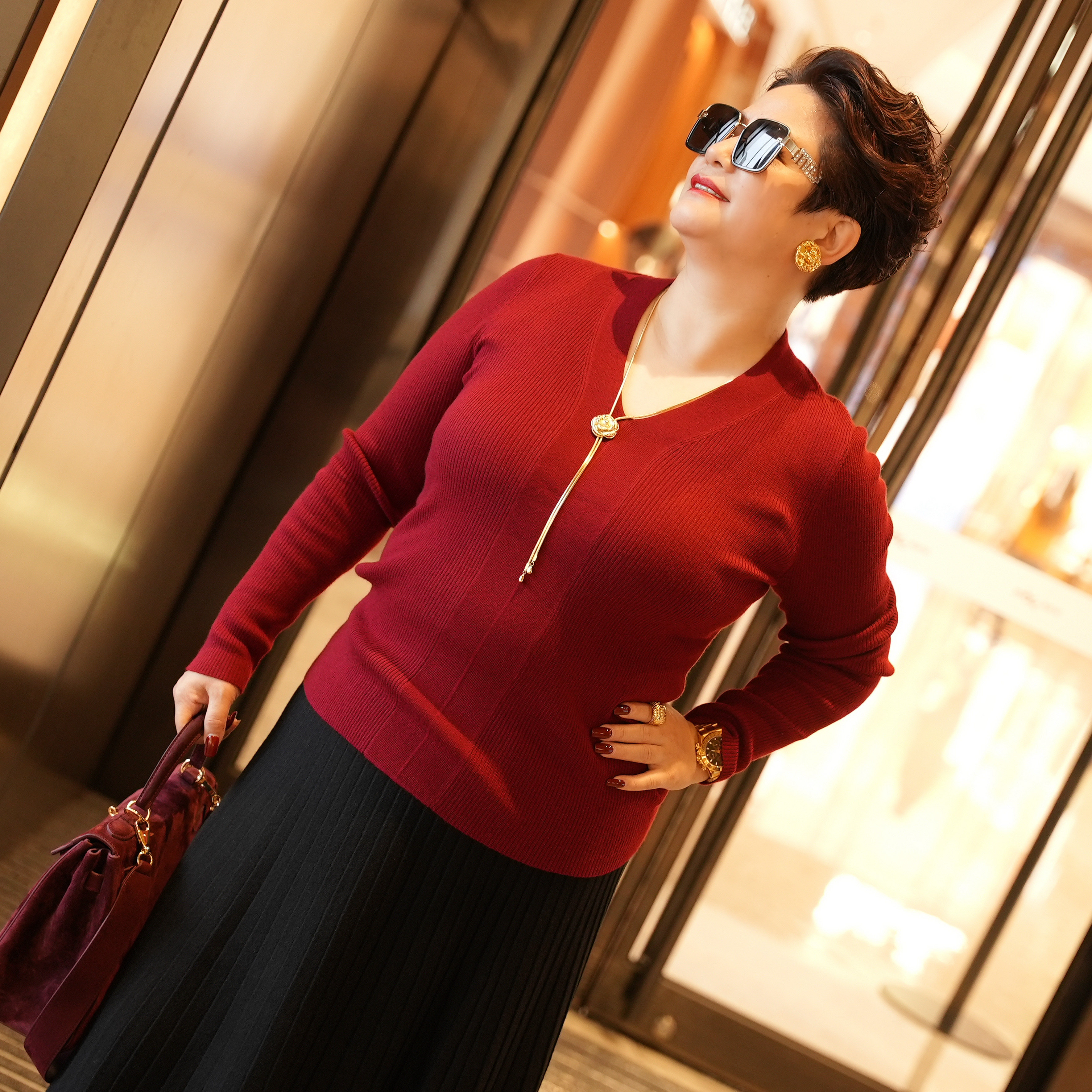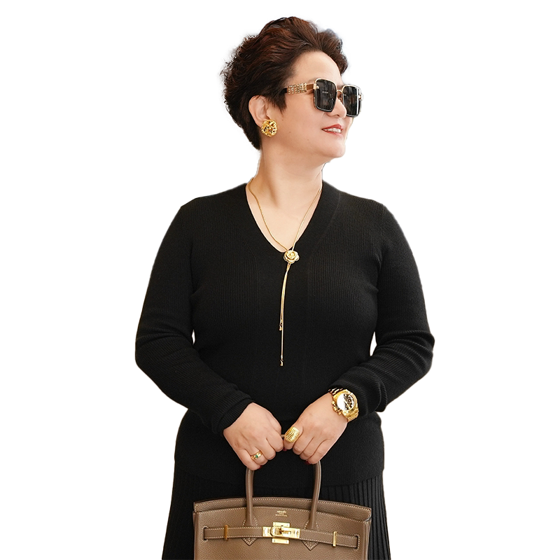 向红同学女装毛衣女款2026新款V领针织毛衫百搭大码长袖上衣SY208
