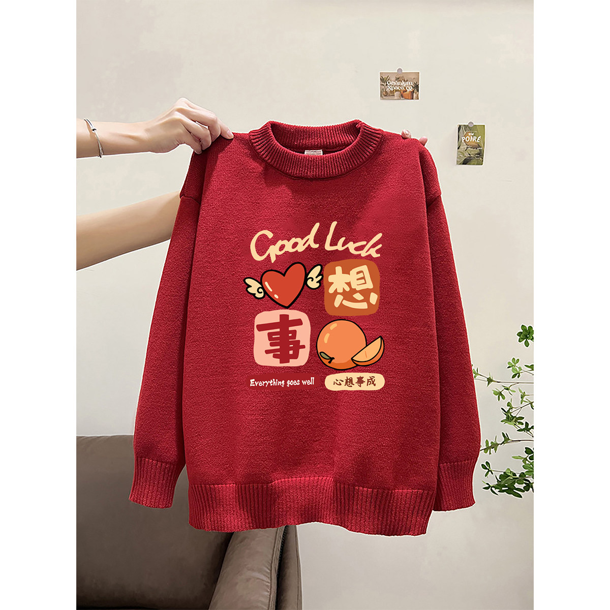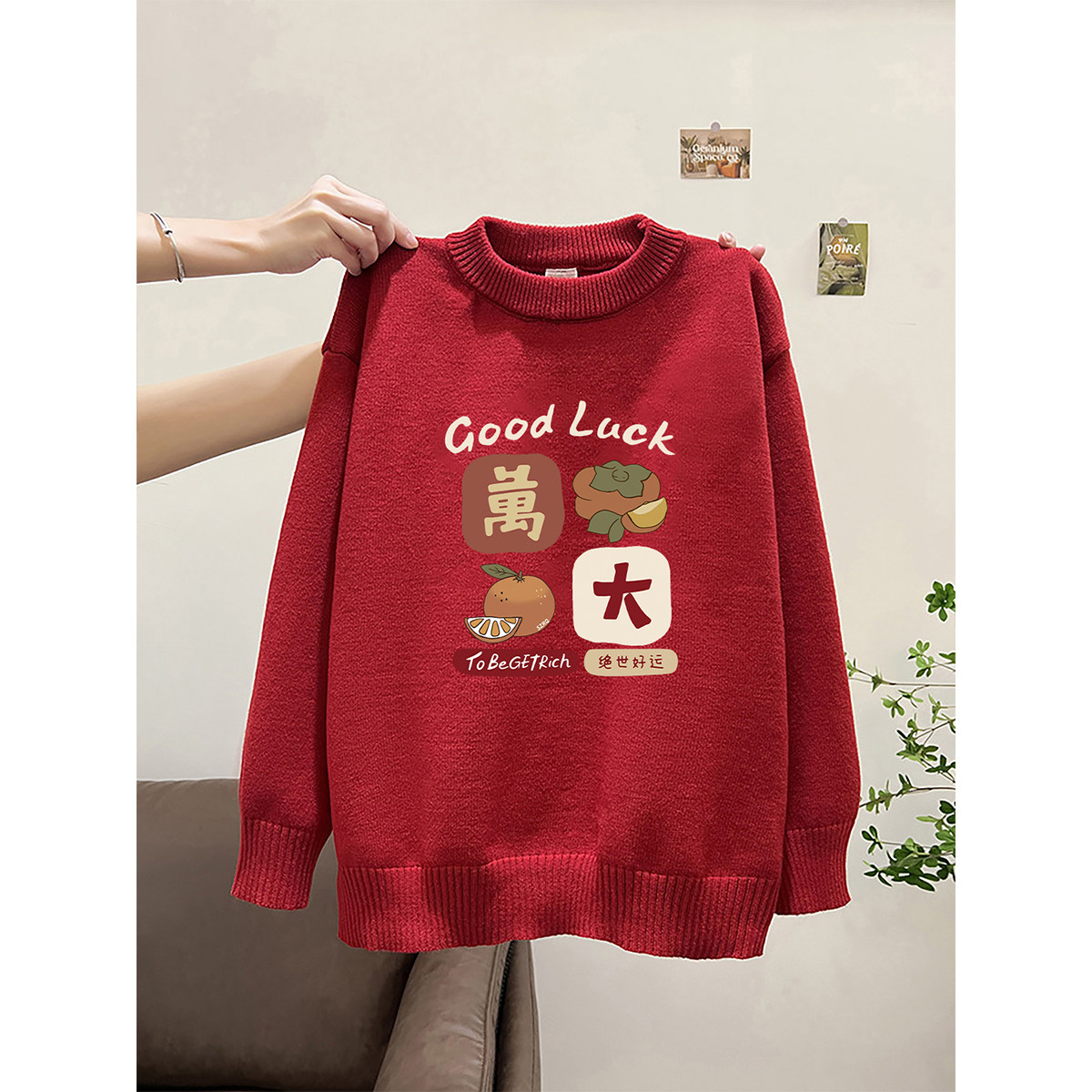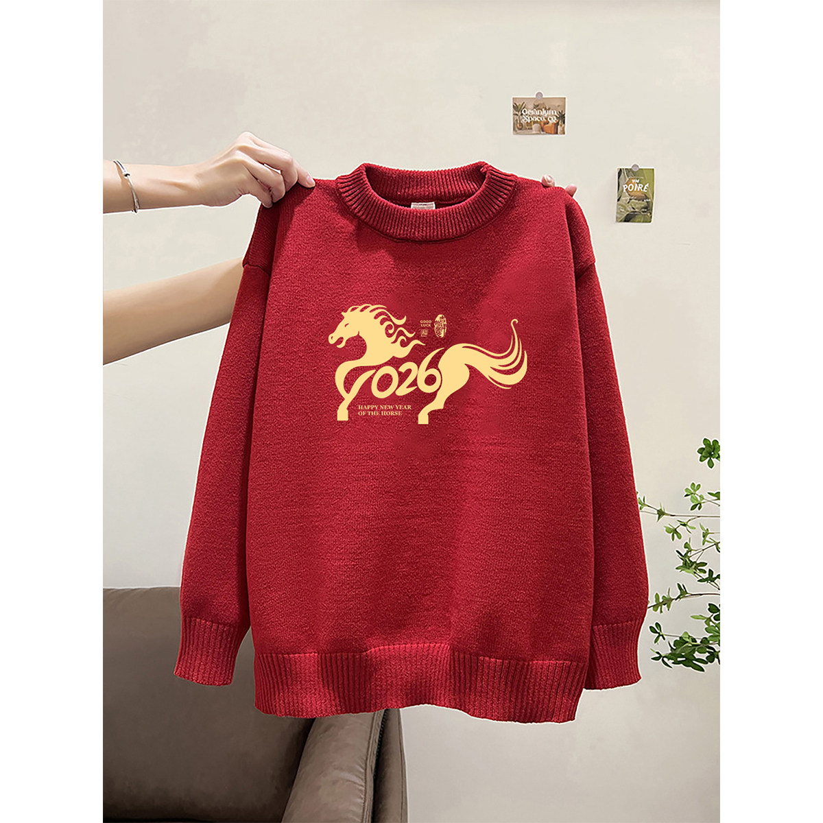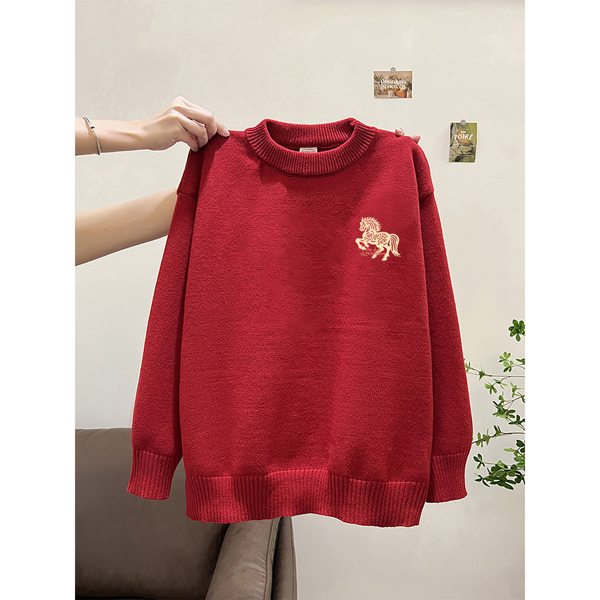 韩系胖mm大码宽松长袖毛衣女款2026马年新款红色新年装针织衫上衣