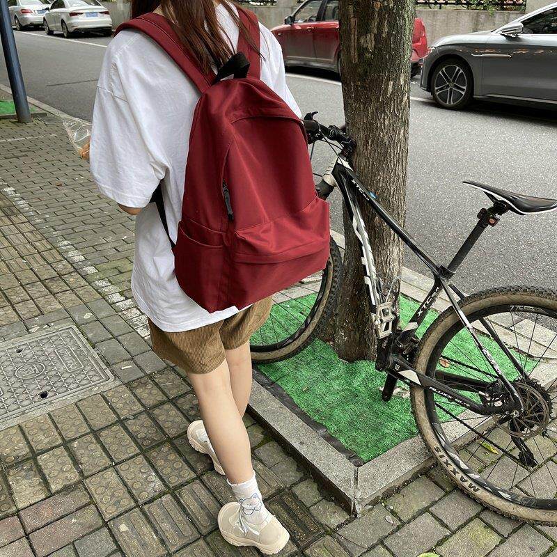 311线报网描述:书包女大学生大容量纯色高中女生双肩包初中
