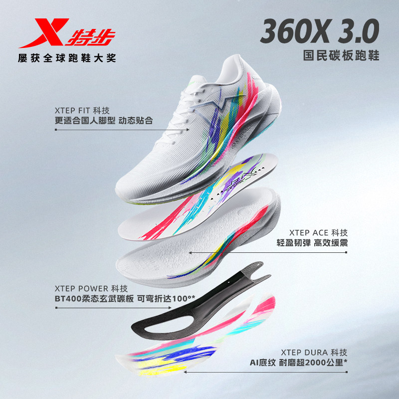【范丞丞同款】特步360X3.0国民碳板跑鞋男鞋体测训练运动鞋子女