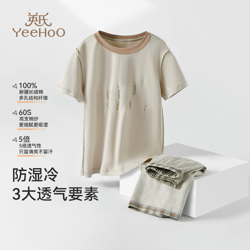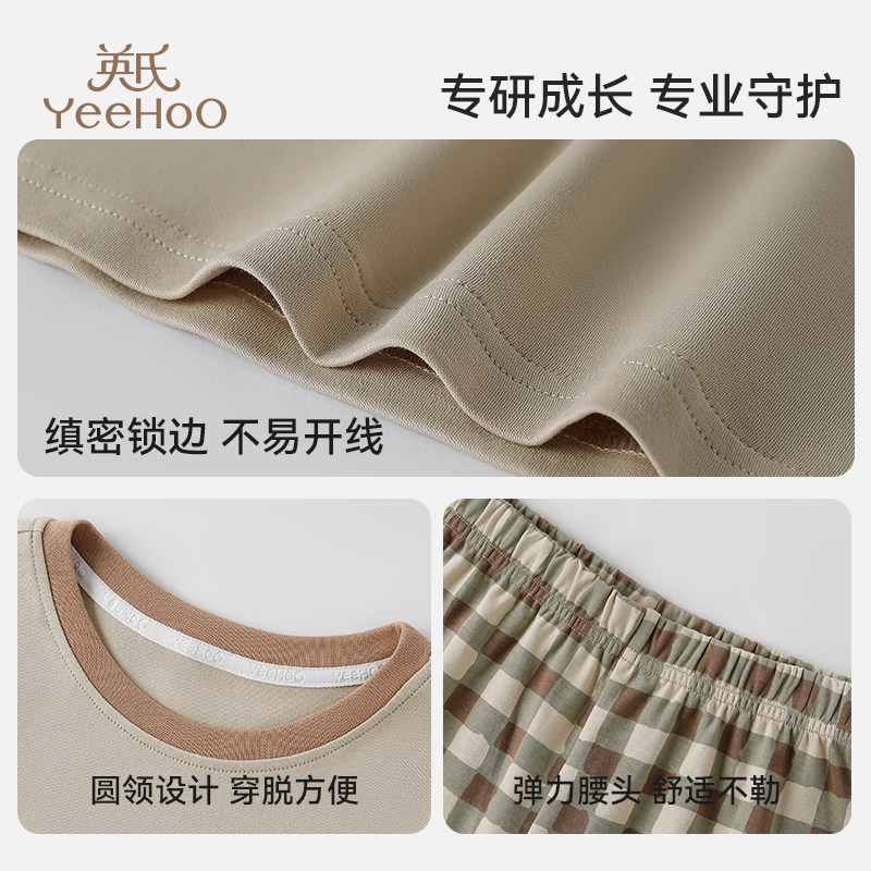 英氏儿童睡衣男童夏季短袖短裤分体套装2026新款空调服家居服薄款