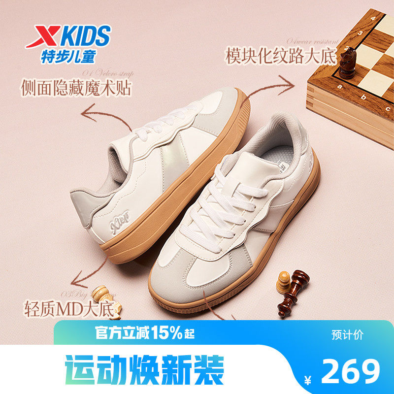 特步童鞋2026新款正品中大童女童休闲板鞋儿童运动防滑德训鞋