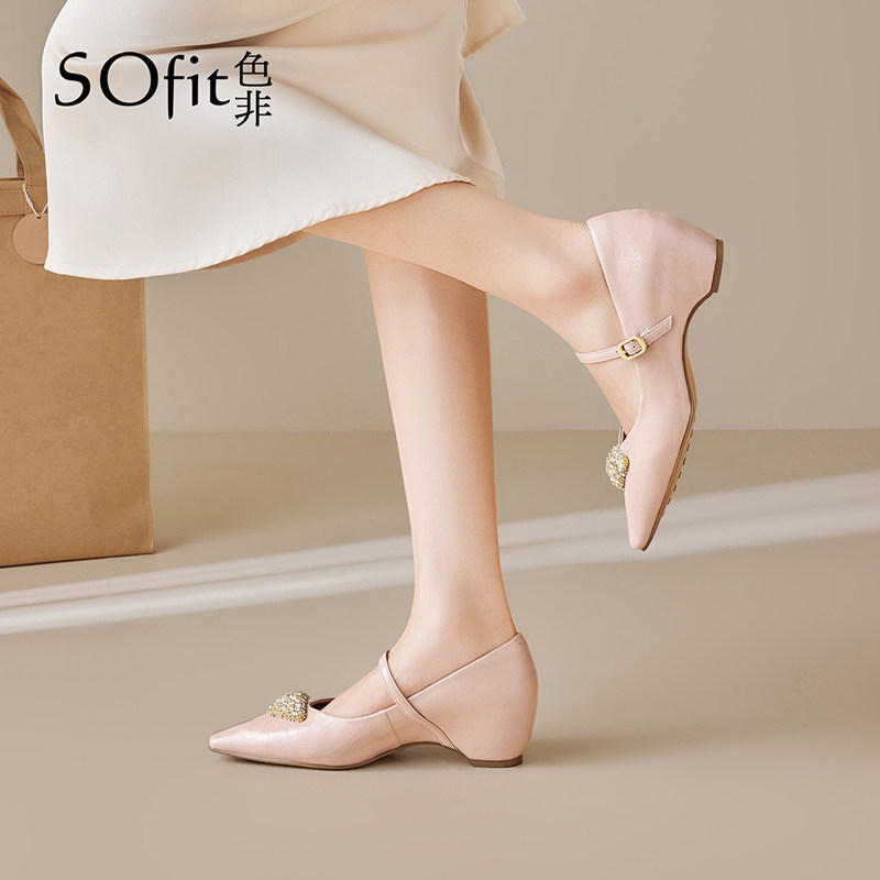 色非2026春季新款法式气质水钻玛丽珍鞋女内增高舒适通勤浅口单鞋