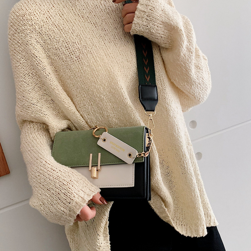 宽肩带单肩斜挎包小包包女2026春季新款时尚百搭撞色洋气小方包潮