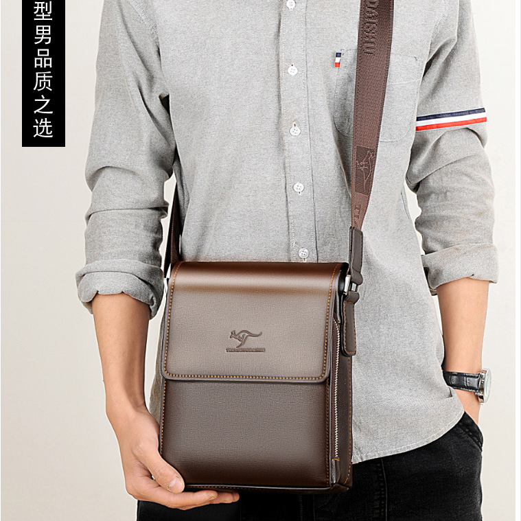 新款男士包包翻盖单肩包休闲斜挎包商务皮包纯牛皮真皮竖款斜挎包