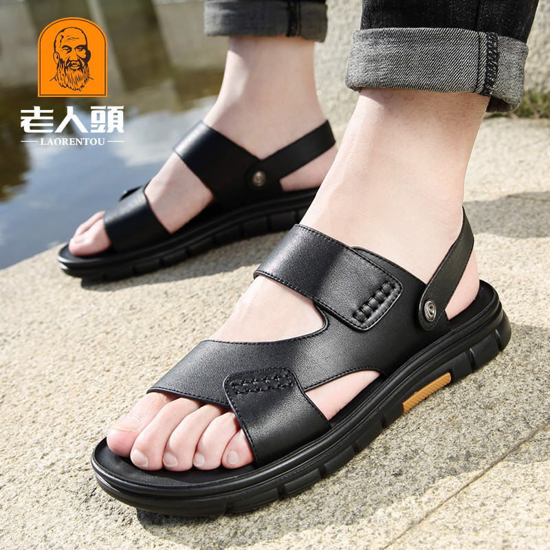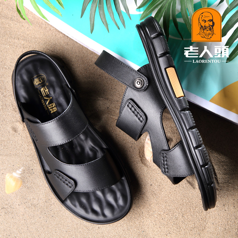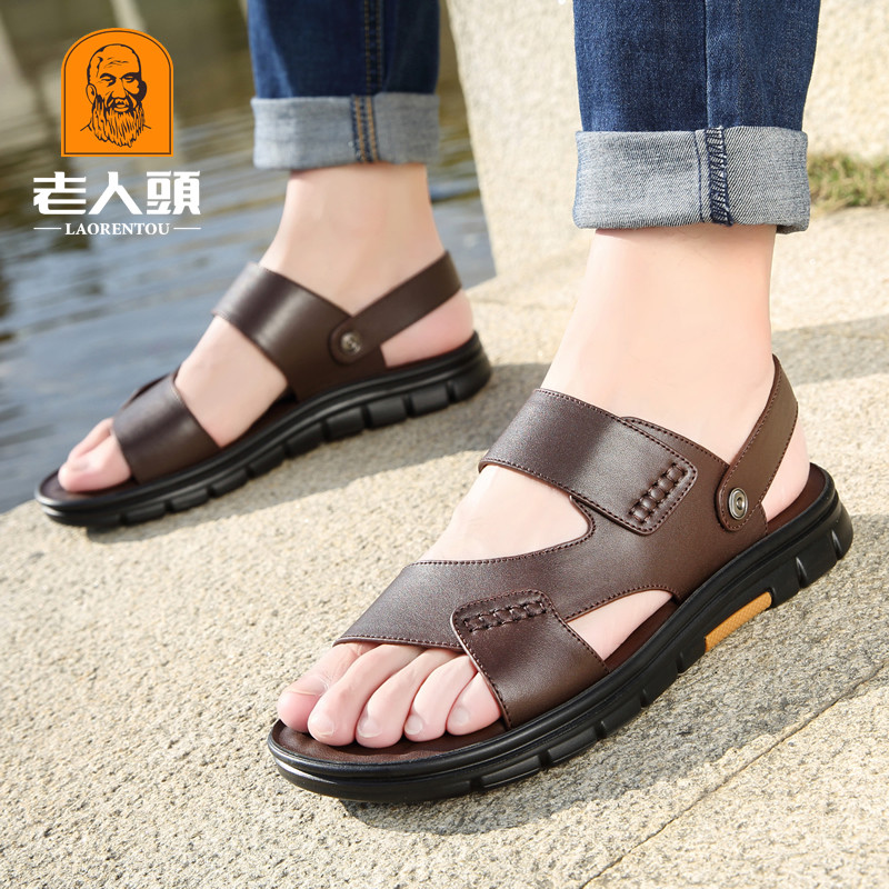 老人头凉鞋男款2026夏新款真皮男士厚底休闲沙滩鞋软底防滑凉拖鞋
