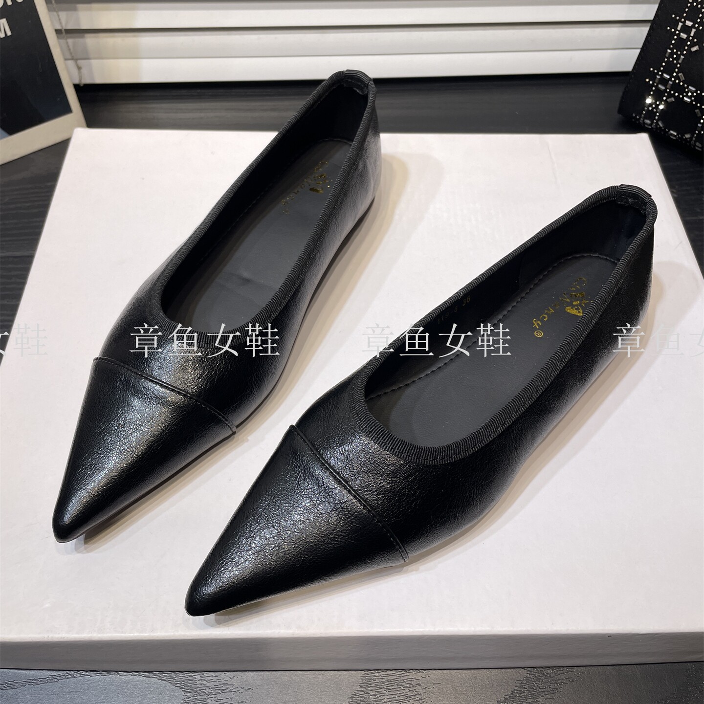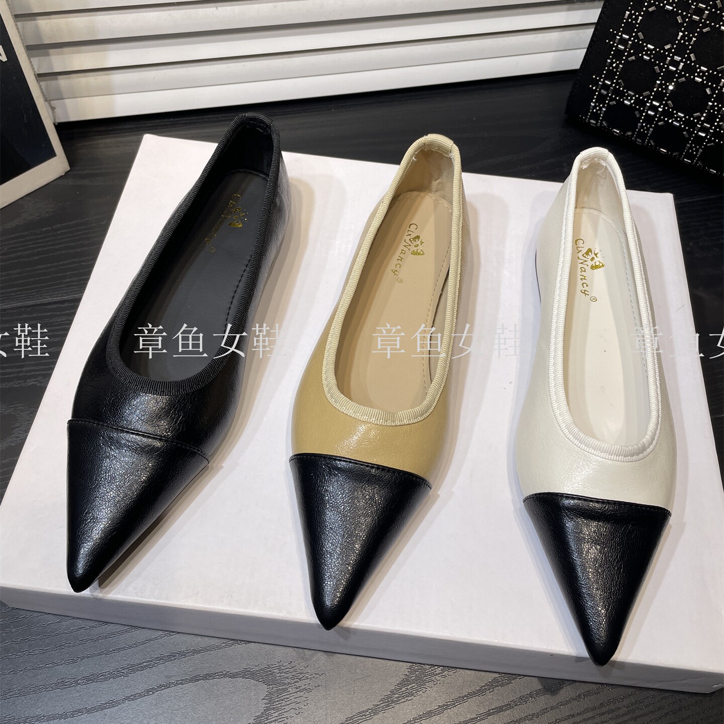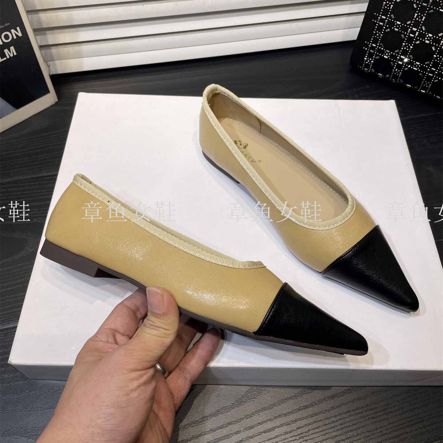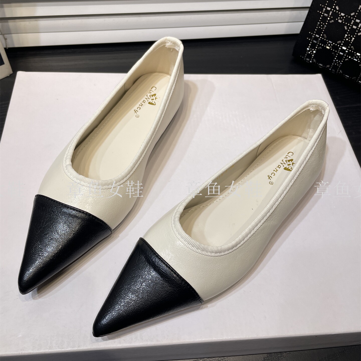 2026春夏新款小香风拼色浅口尖头单鞋女平底舒适通勤百搭时尚瓢鞋