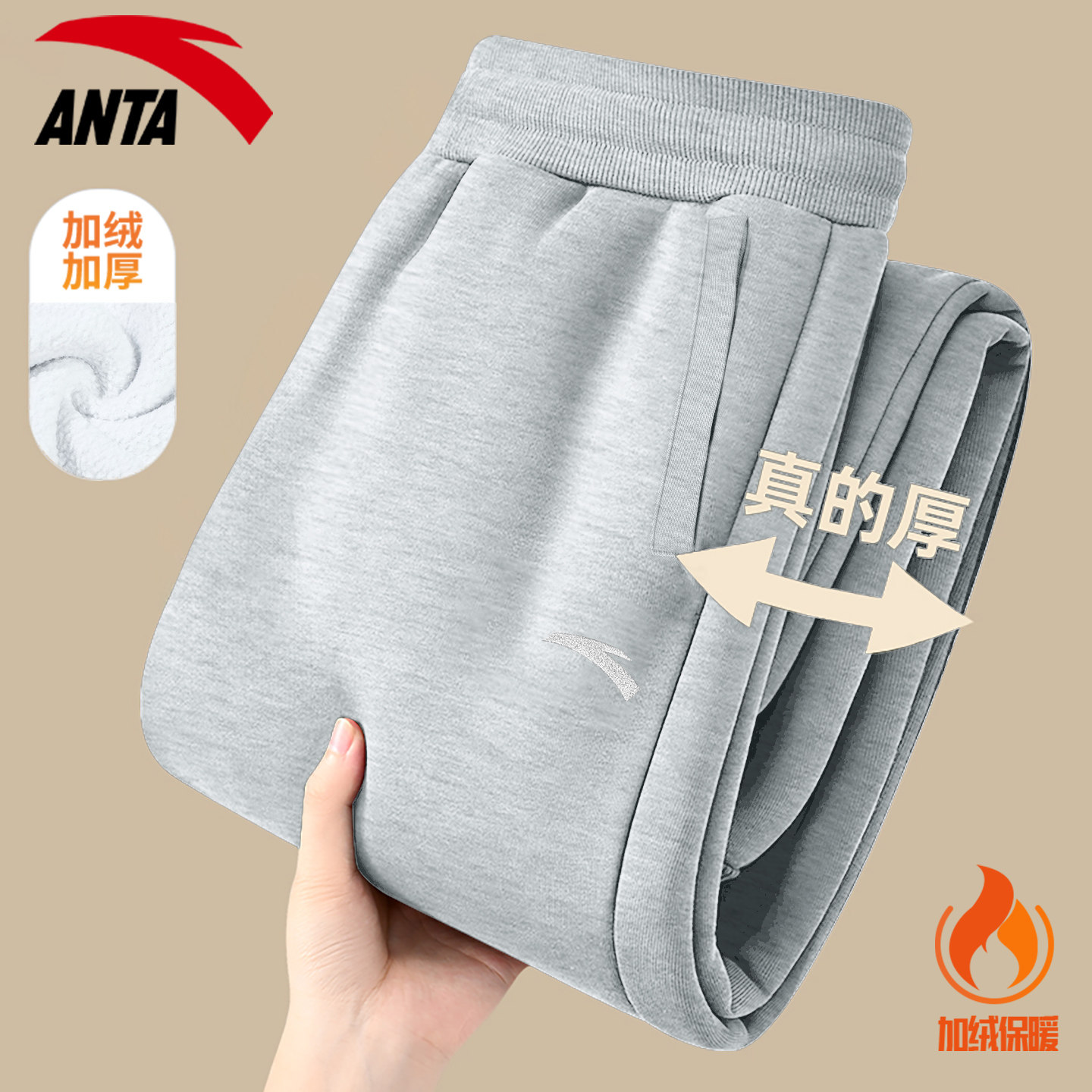 安踏加绒运动裤男裤冬季青少年休闲宽松大码束脚长裤加厚保暖裤子