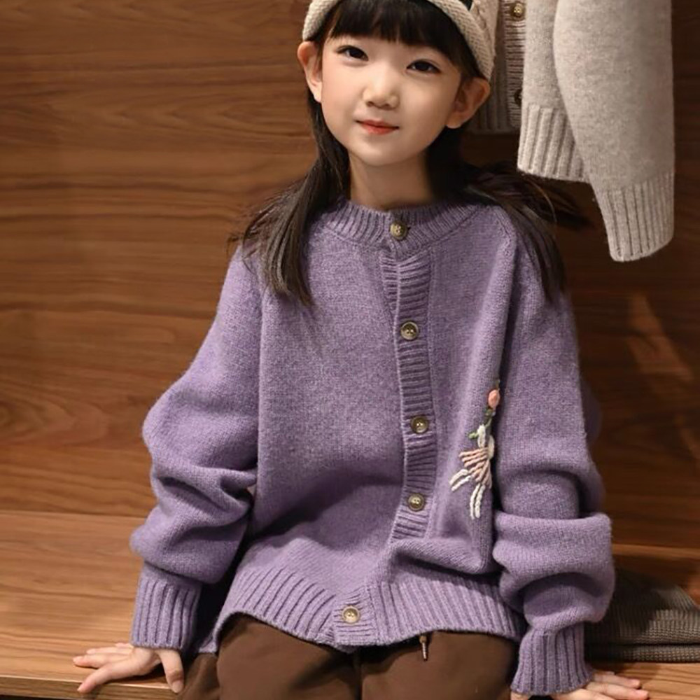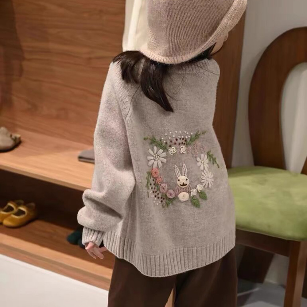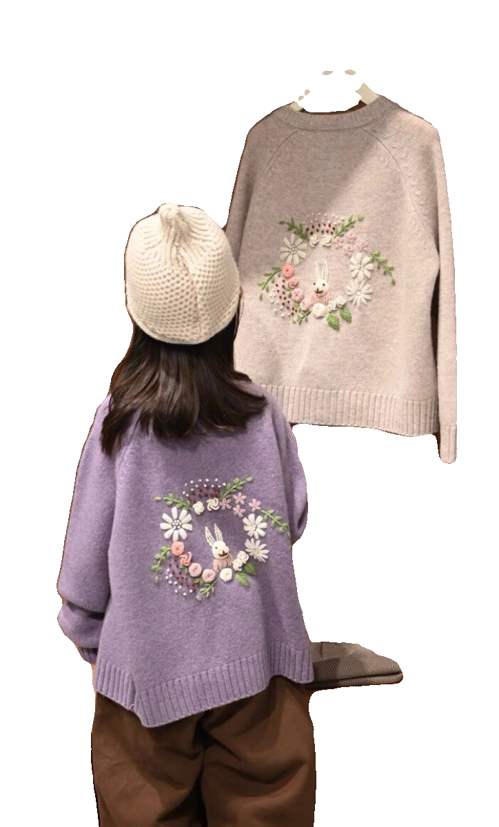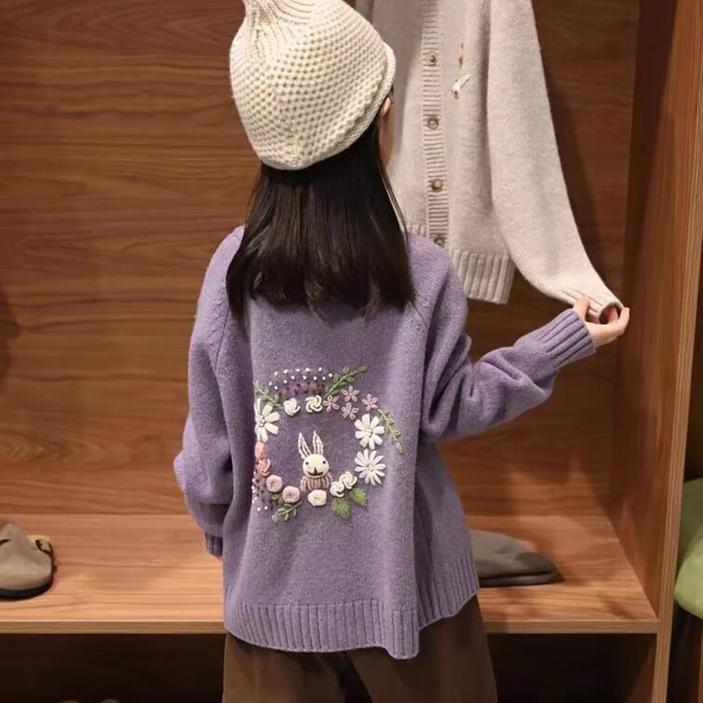 女童外套春装2026新款儿童针织开衫洋气卡通小兔子圆领女大童上衣