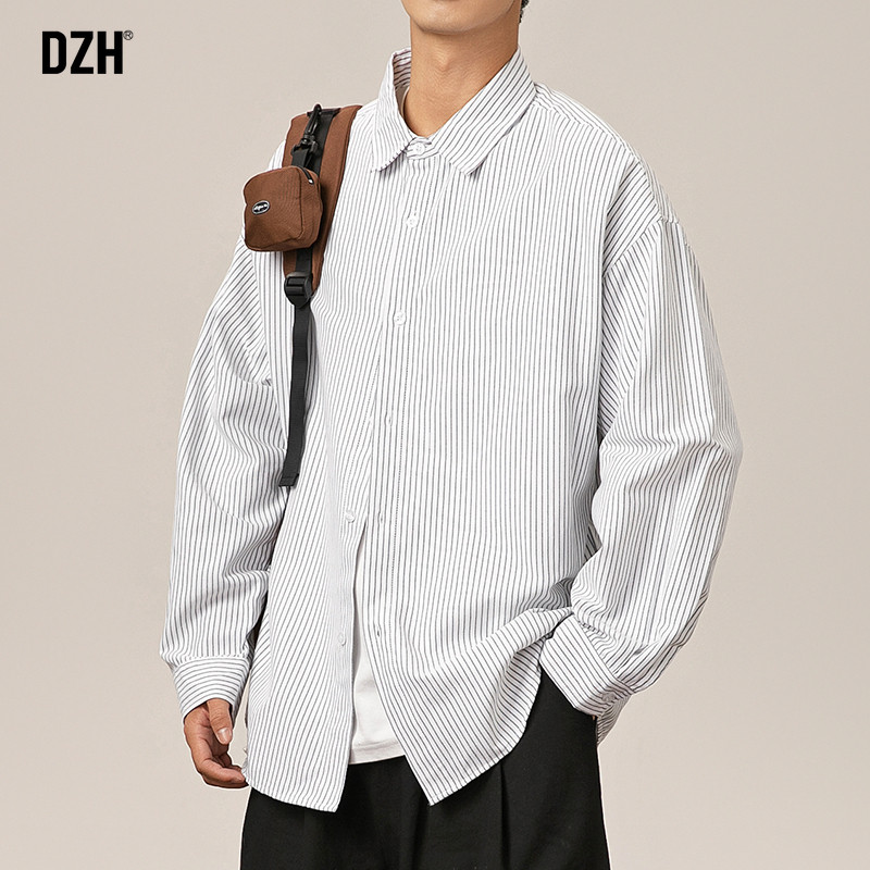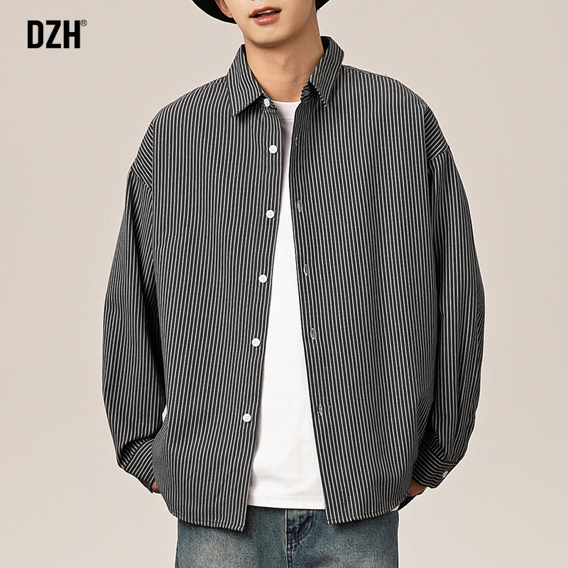 男生条纹衬衫男长袖秋季潮牌2026新款休闲上衣男款美式衬衣外套潮