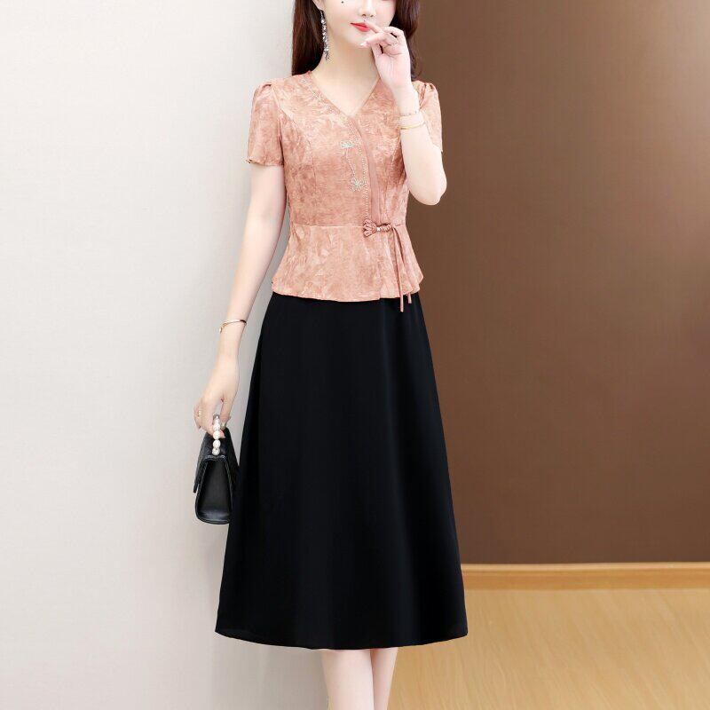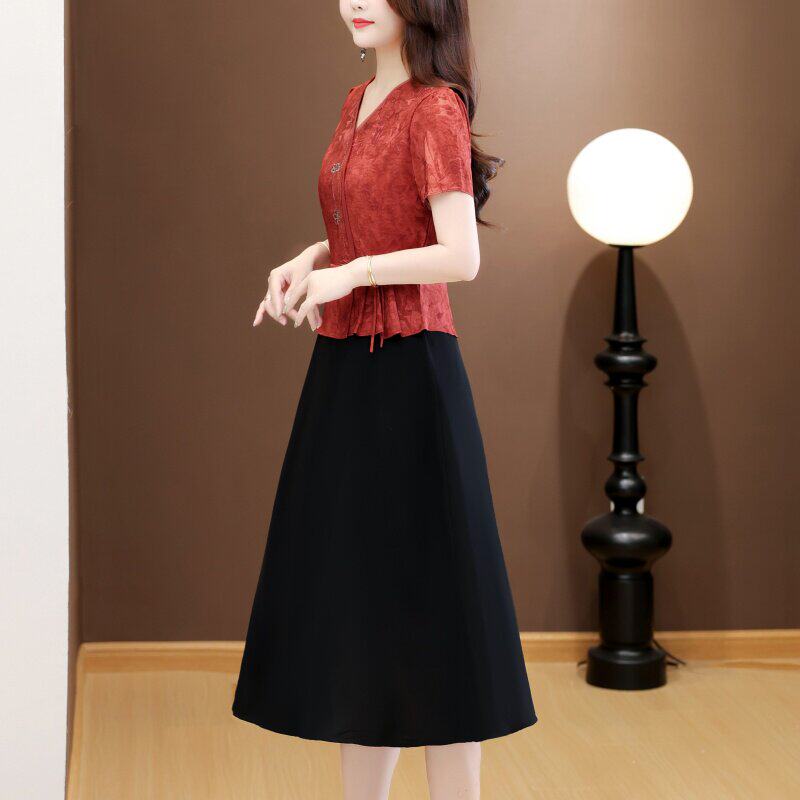 真丝桑蚕丝裙子2026新款今年流行爆款夏装女覆古妈妈假两件洋装
