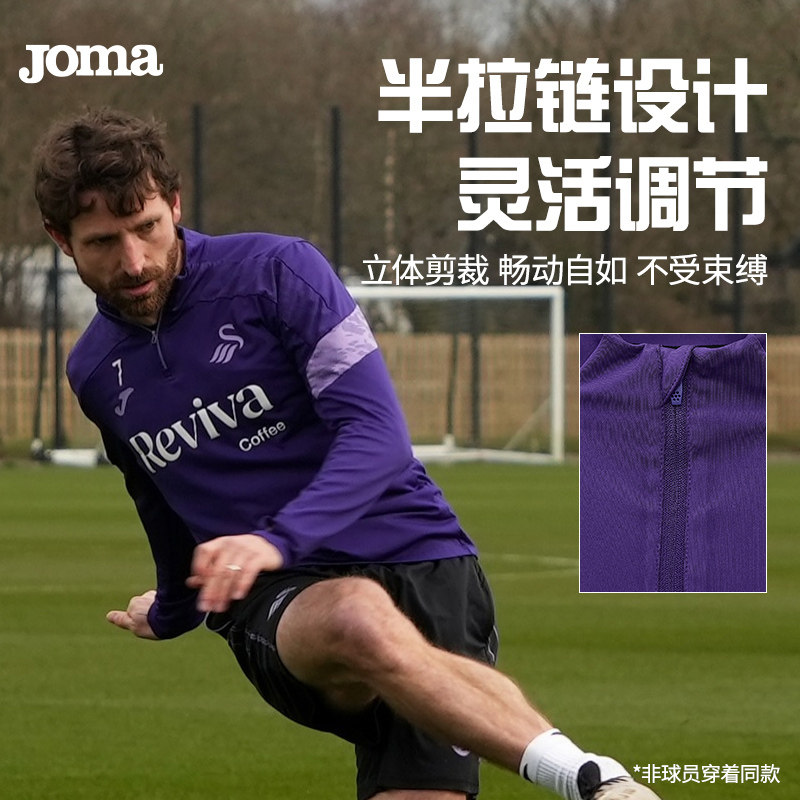 Joma26新款半拉链运动长袖拇指扣斯旺西足球训练服户外跑步透气