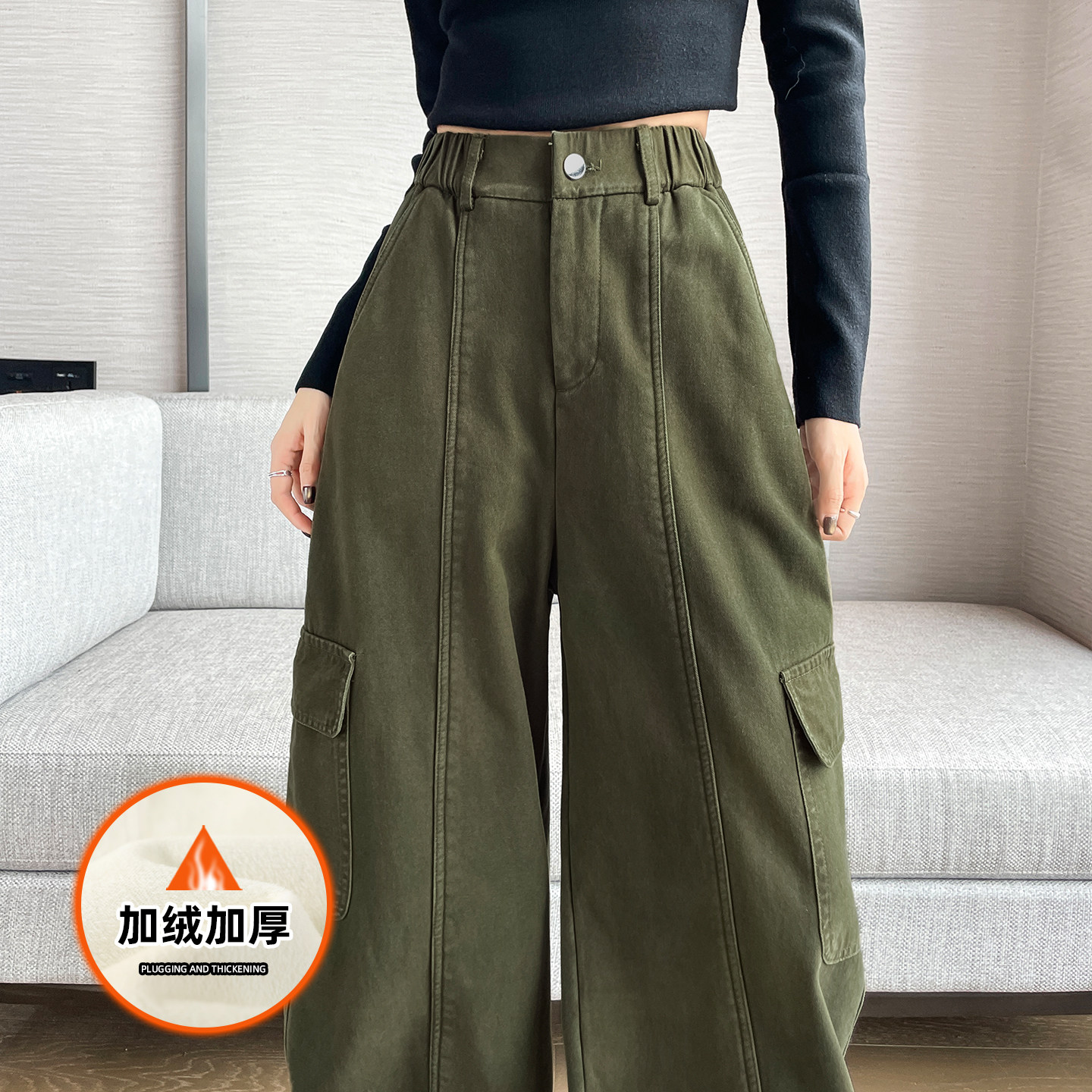 加绒牛仔弯刀裤女冬2025新款今年流行爆款加厚香蕉镰刀阔腿工装裤