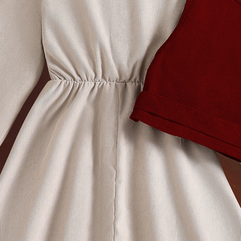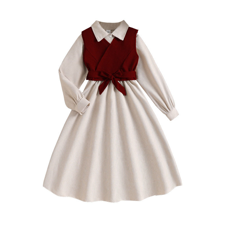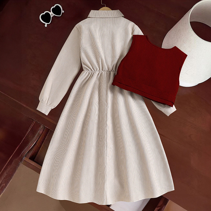 2026春季新款跨境童装欧美时尚背心马甲翻领长袖连衣裙女大童套装