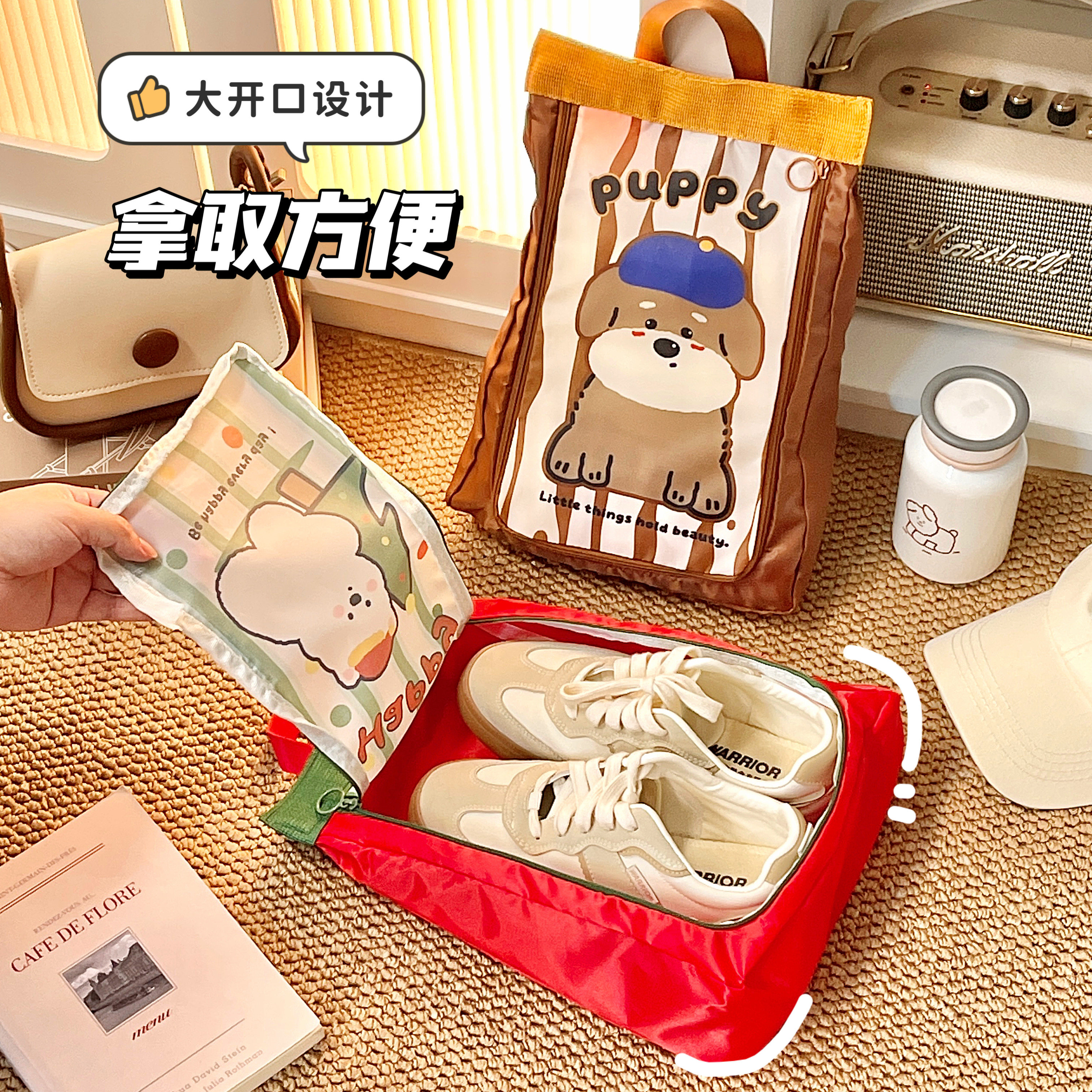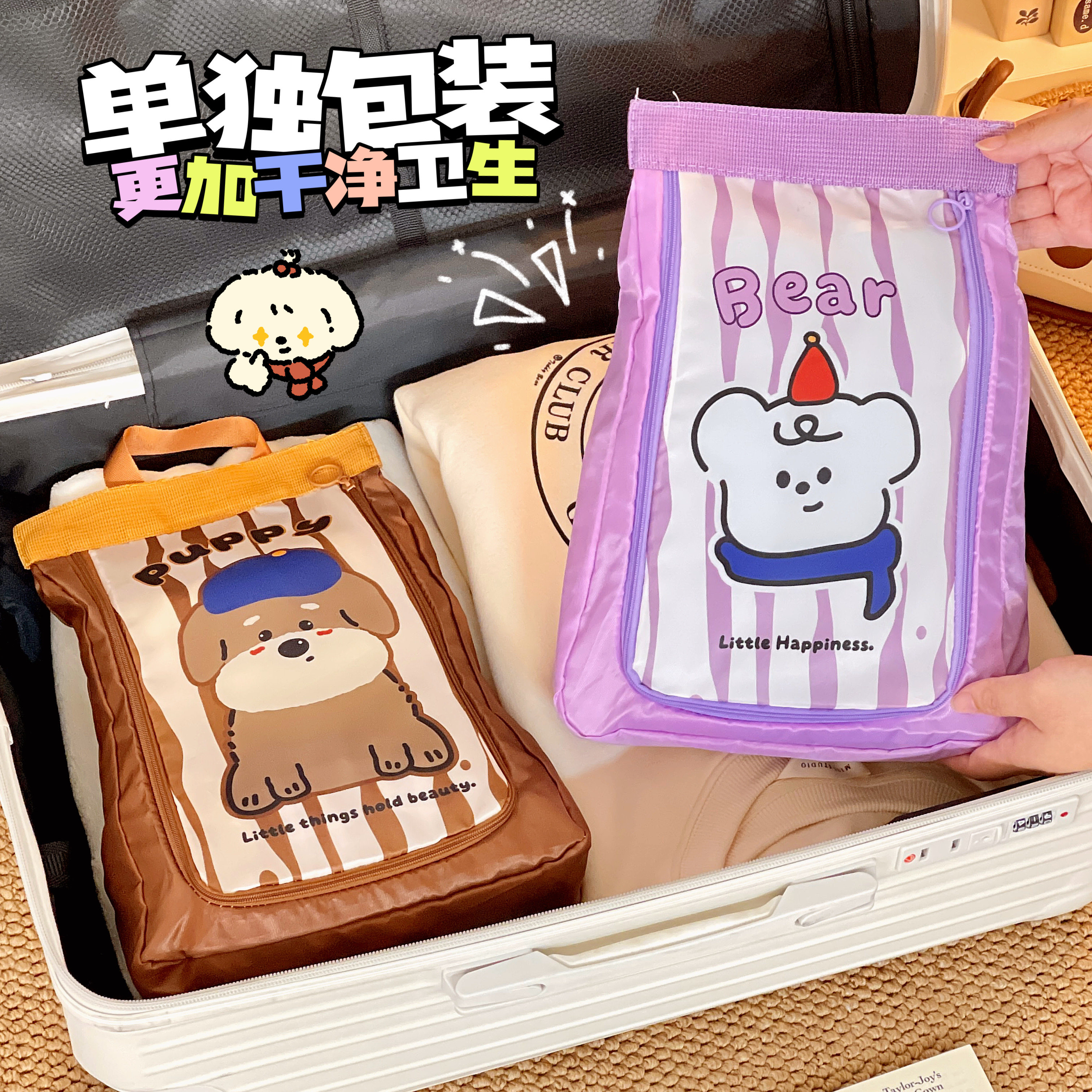 便携旅行鞋袋鞋子收纳包防水旅游手提包学生行李分装袋可爱卡通女