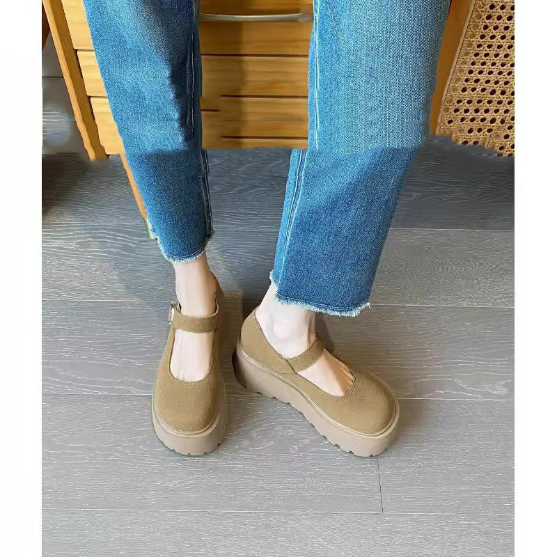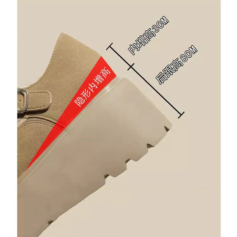 小个子真皮玛丽珍鞋女11cm内增高2025新款休闲厚底浅口软底勃肯鞋
