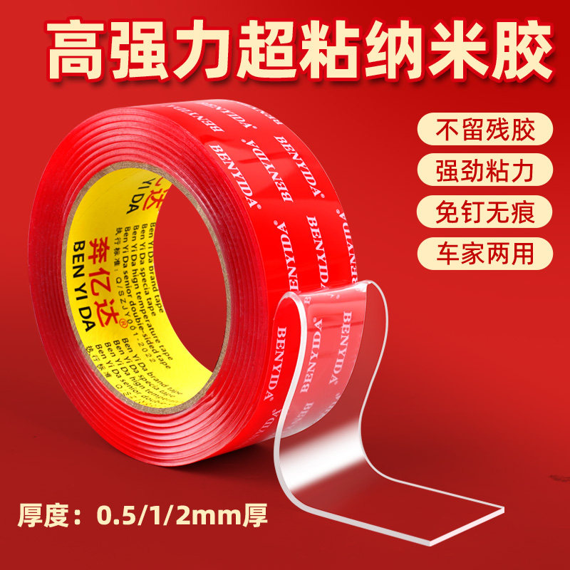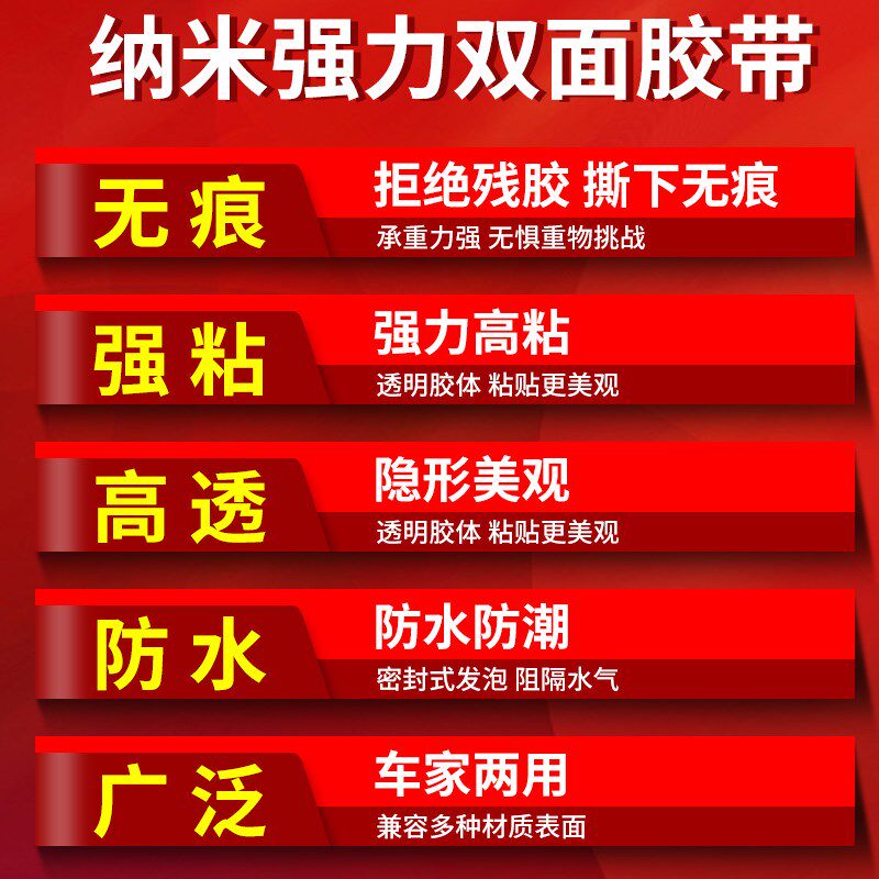 超粘纳米双面胶高粘度超薄不留痕透明加宽固定贴墙粘排插海报车用